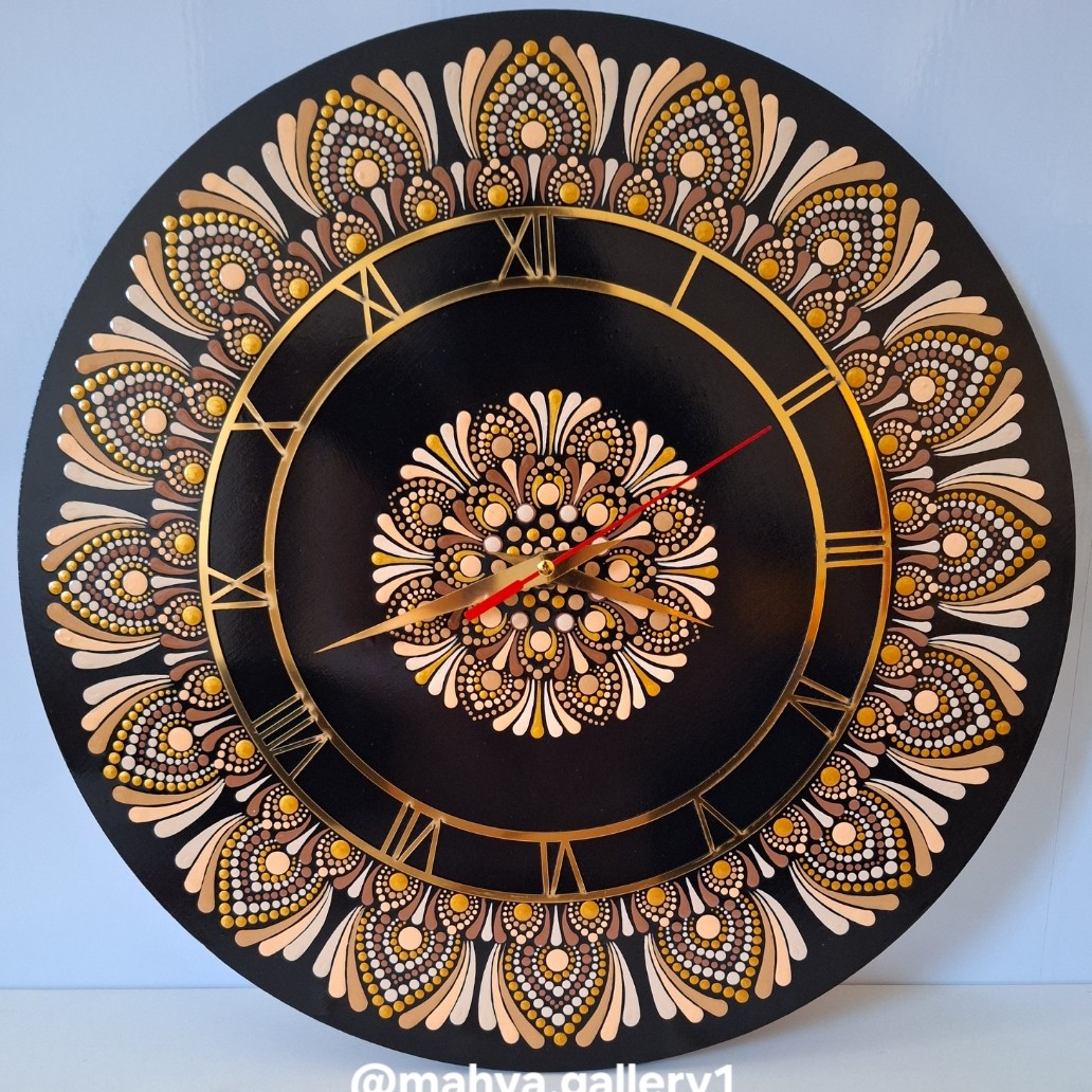 ساعت دیواری سنتی دستساز، اجرا شده با تکنیک دات ماندالا با رنگ ثابت مبلمونسرا مدل 239398