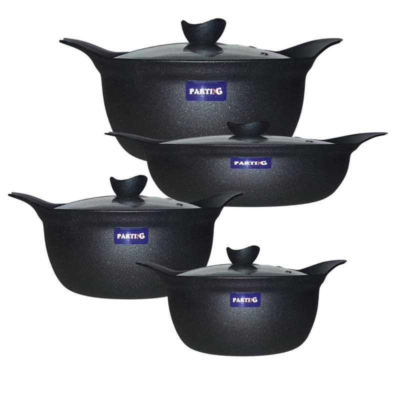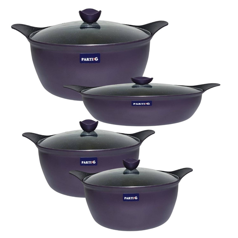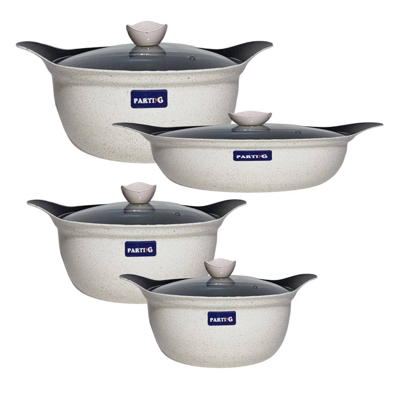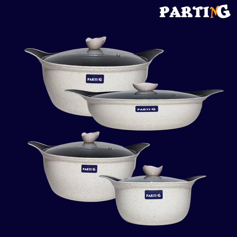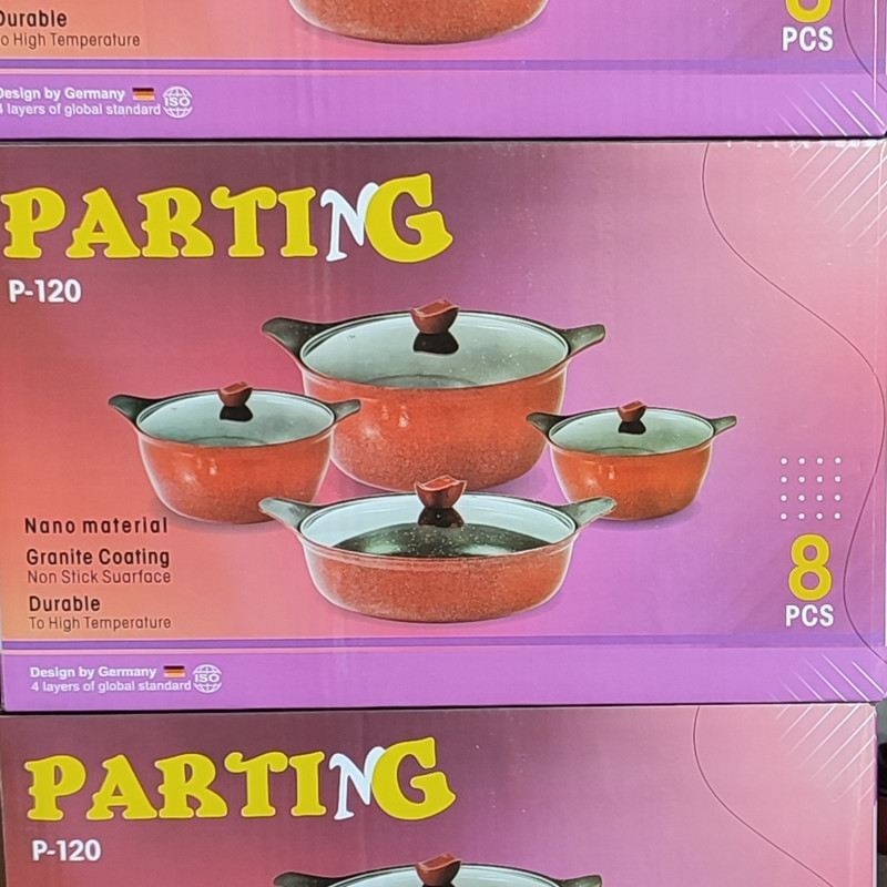 سرویس قابلمه parting یک محصول کاملا کاربردی برای انواع پخت و پز که دارای ۳ عدد قابلمه درب دار با سایزهای ۲۴ ، ۲۰ و ۱۶ و یک تابه درب دار سایز ۲۴ میباشد و مناسب برای ۱ الی ۶ نفره است ، جنس این محصول از نانو چدن که جدید ترین و بهداشتی ترین جنس برای تولید لوازم پخت و پز در کل دنیا برای کسانی که به سلامتی خود اهمیت میدهند میباشد . این محصول دارای ۴ لایه استاندارد شامل : ۱- نانو چدن (بدنه اصلی) ۲- استاتیک پودری نسوز (لایه بیرونی ظرف) ۳- لایه نانو نچسب ۴- نانو گرانیت طبیعی این سرویس همچنین در طراحی دارای ظاهری ارگونومیک و بهره مندی از تکنولوژی پخت یکنواخت میباشد.