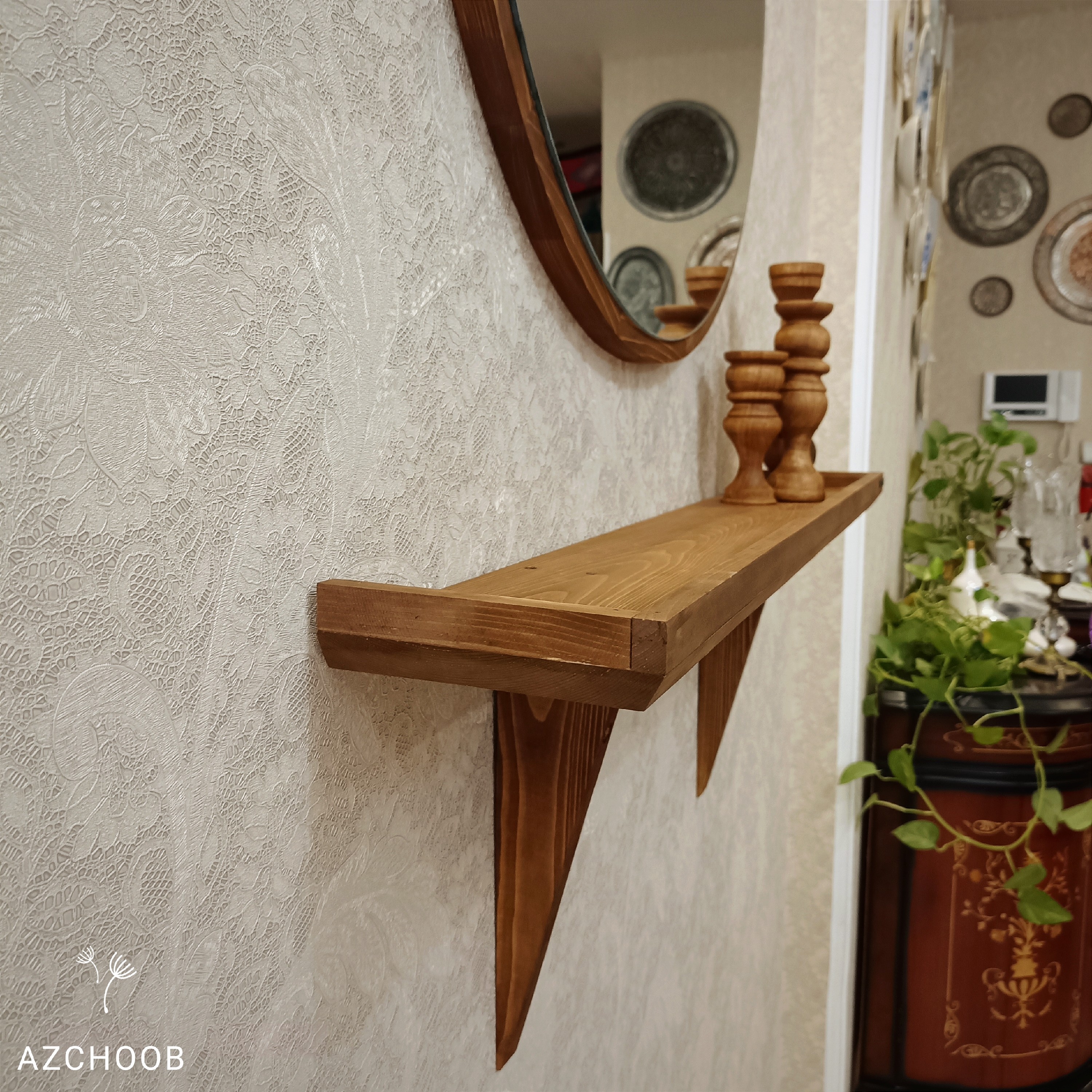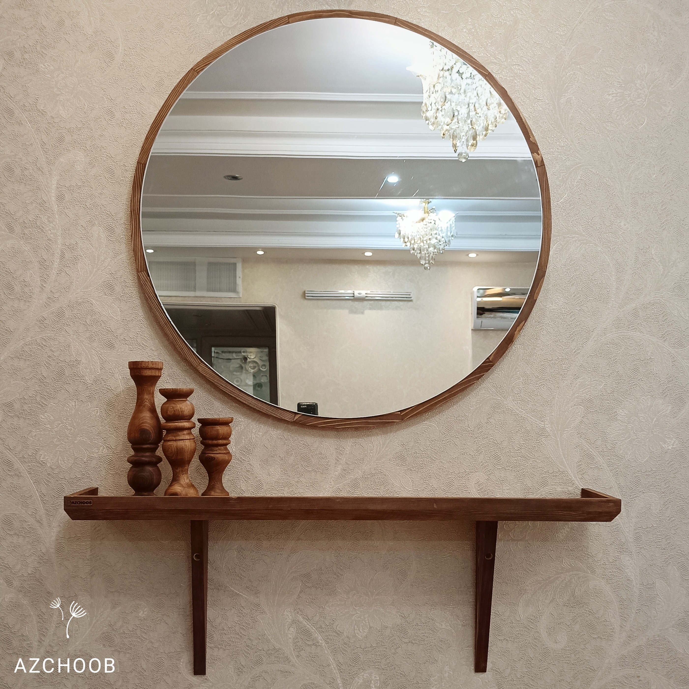 آیینه دایره با قطر70 همراه شلف طول 80 مبلمونسرا مدل 262019