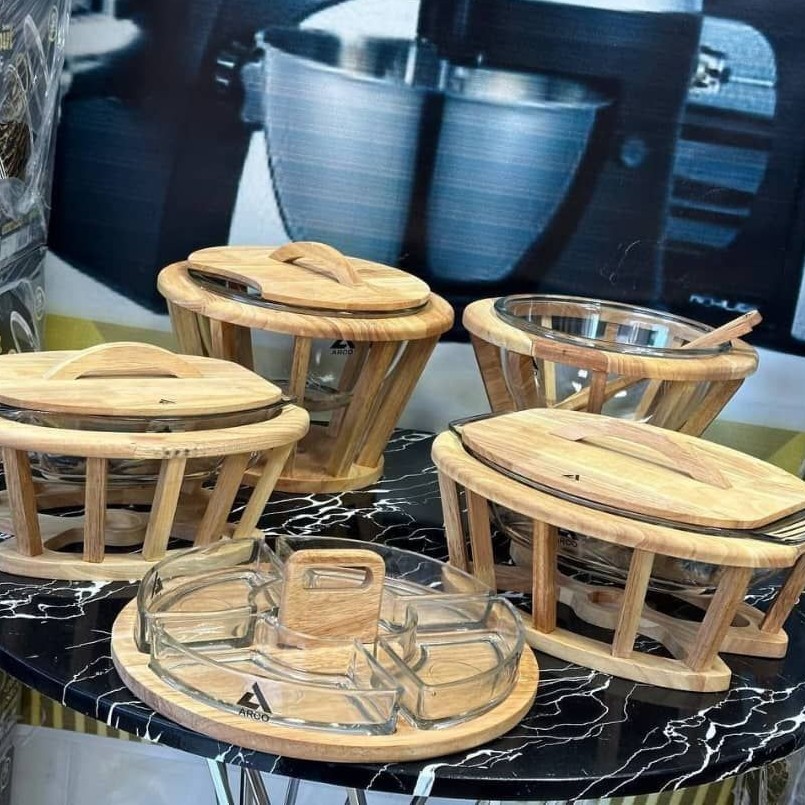 سرویس سوفله چهارتیکه وارمردار سوپ خوری درب دار برنج خوری درب دار مرغ خوری درب دار سالاد خوری همراه قاشق چنگال چوبی ✨چوب ها قابل شستشو ✨همه ظروف سرو دارای جای وارمر می باشند. ✨شیشه ها شعله مستقیم