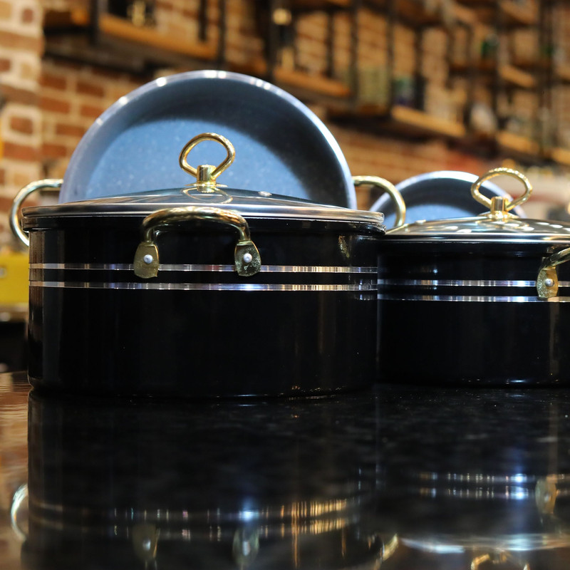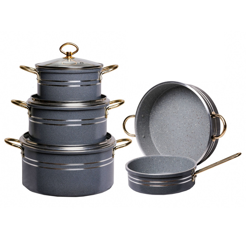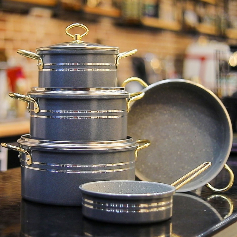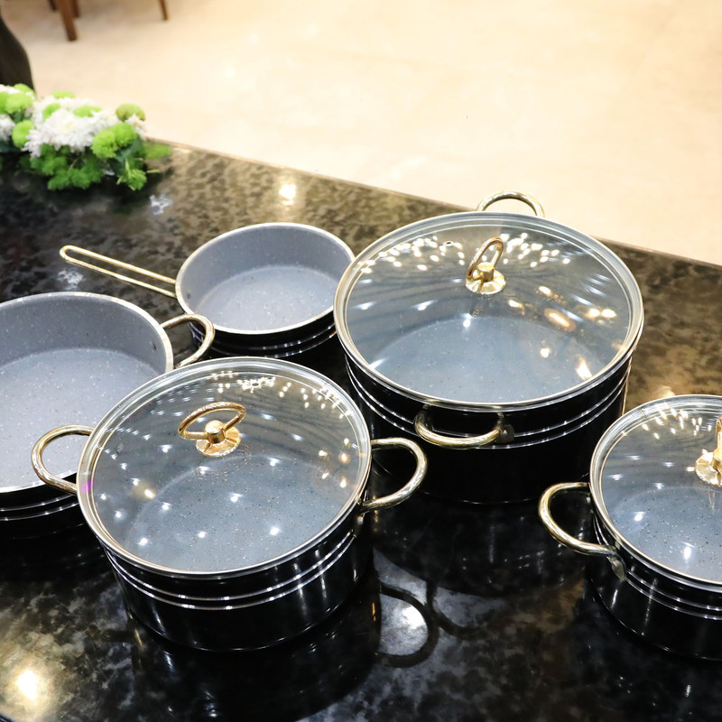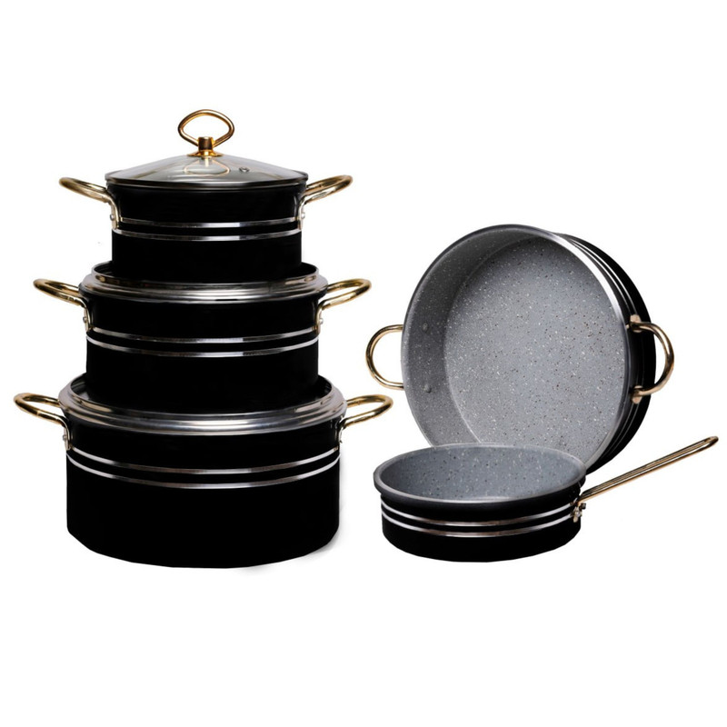 سرویس پخت و پز رافیا، 8پارچه گرانیتی با پوشش 5لایه با کیفیت عالی و طراحی منحصر به فرد و جذاب ، قابلمه سایز 26 / قابلمه سایز 22 / قابلمه سایز 18 / تابه سایز 26 / تابه سایز 18