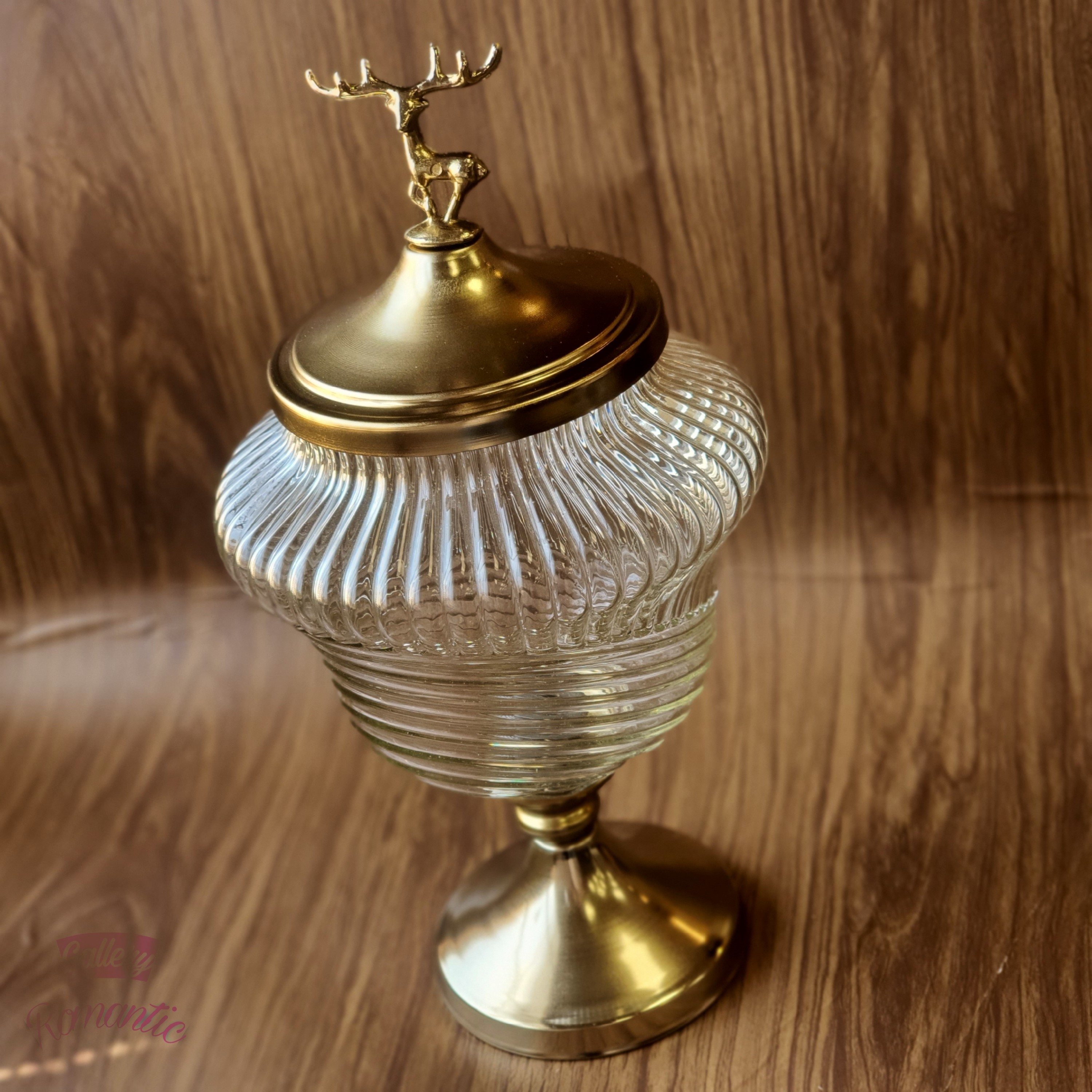 ⭕️شکلات خوری پایه دار درب گوزنی 🔻جنس بدنه شیشه طرح دار بدون نقطه و حباب 🔹️ارتفاع 34 سانت قطر دهانه 12.5 سانت 🔻مناسب پذیرایی شکلات و تنقلات و دکور 🔹️فوق العاده زیبا و شکیل 🔻درب و پایه پیچ شده میباشد و چسبی نیست 🔹️رنگ طلایی ثابت ⚠️لطفا قبل از سفارش جهت اطلاع از موجودی پیام دهید 📦ارسال فوری با ضمانت به سراسر کشور