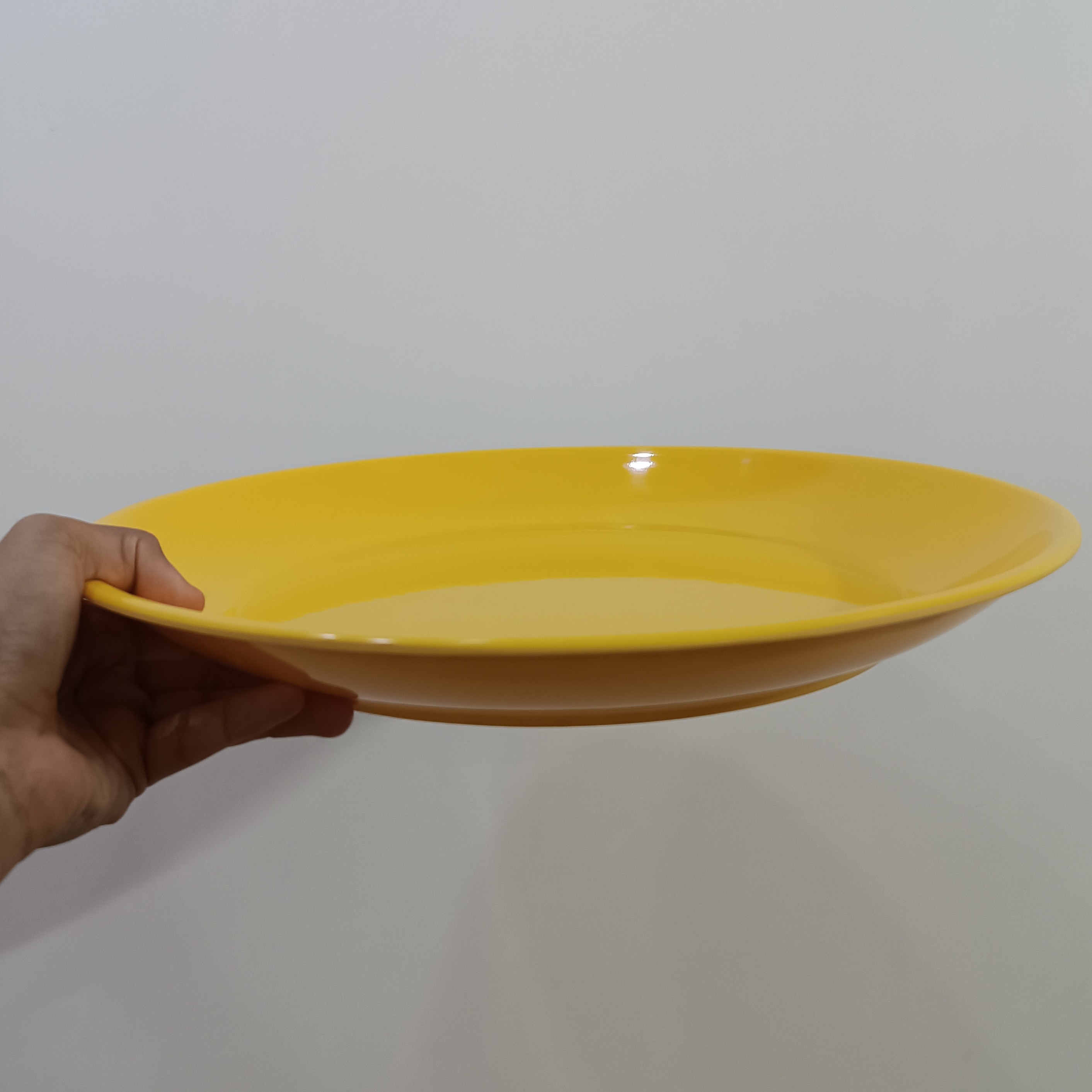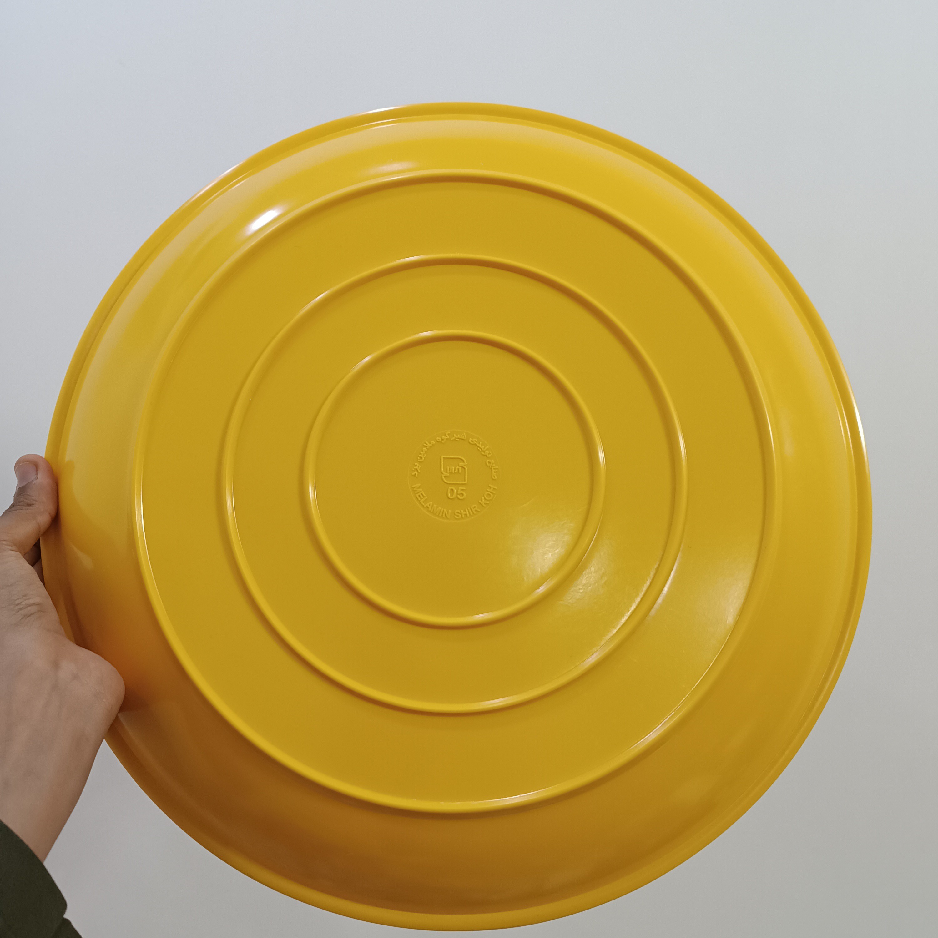 دیس گرد گود ملامین رنگی زرد مارک شیرکوه دارای استاندارد قطر 36 در ارتفاع 4سانت
