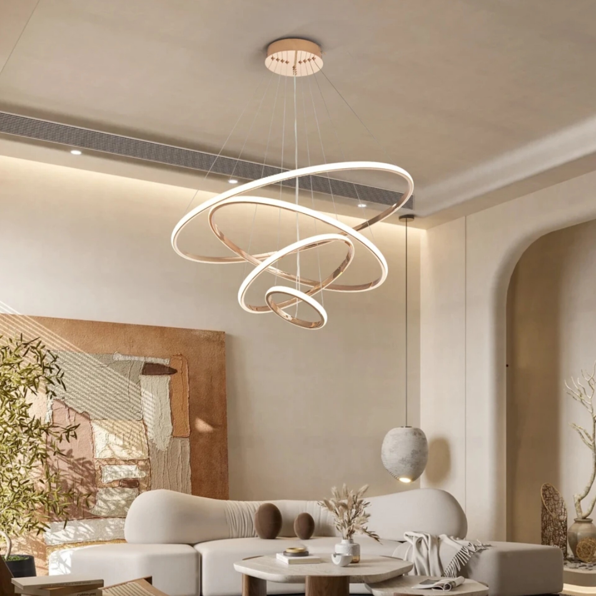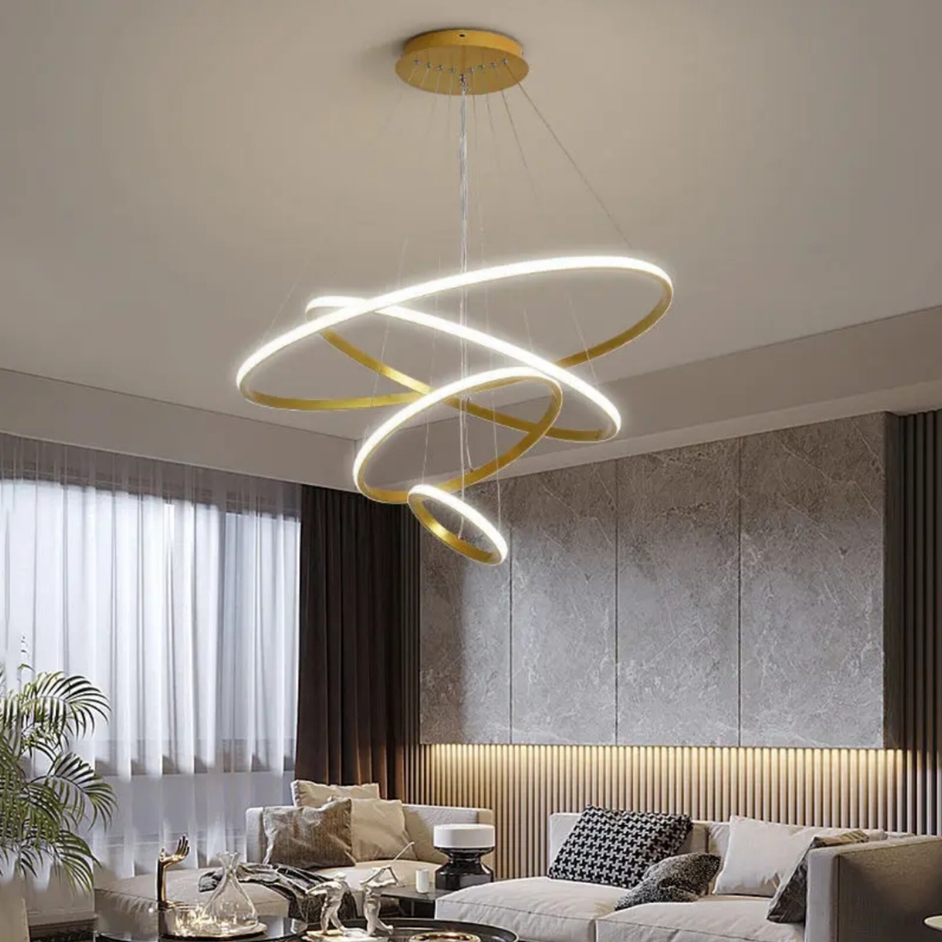 لوستر مدرن دایره 4 حلقه هشت حالت نور دارای ریموت کنترل و اپلیکیشن موبایل مبلمونسرا مدل 244260