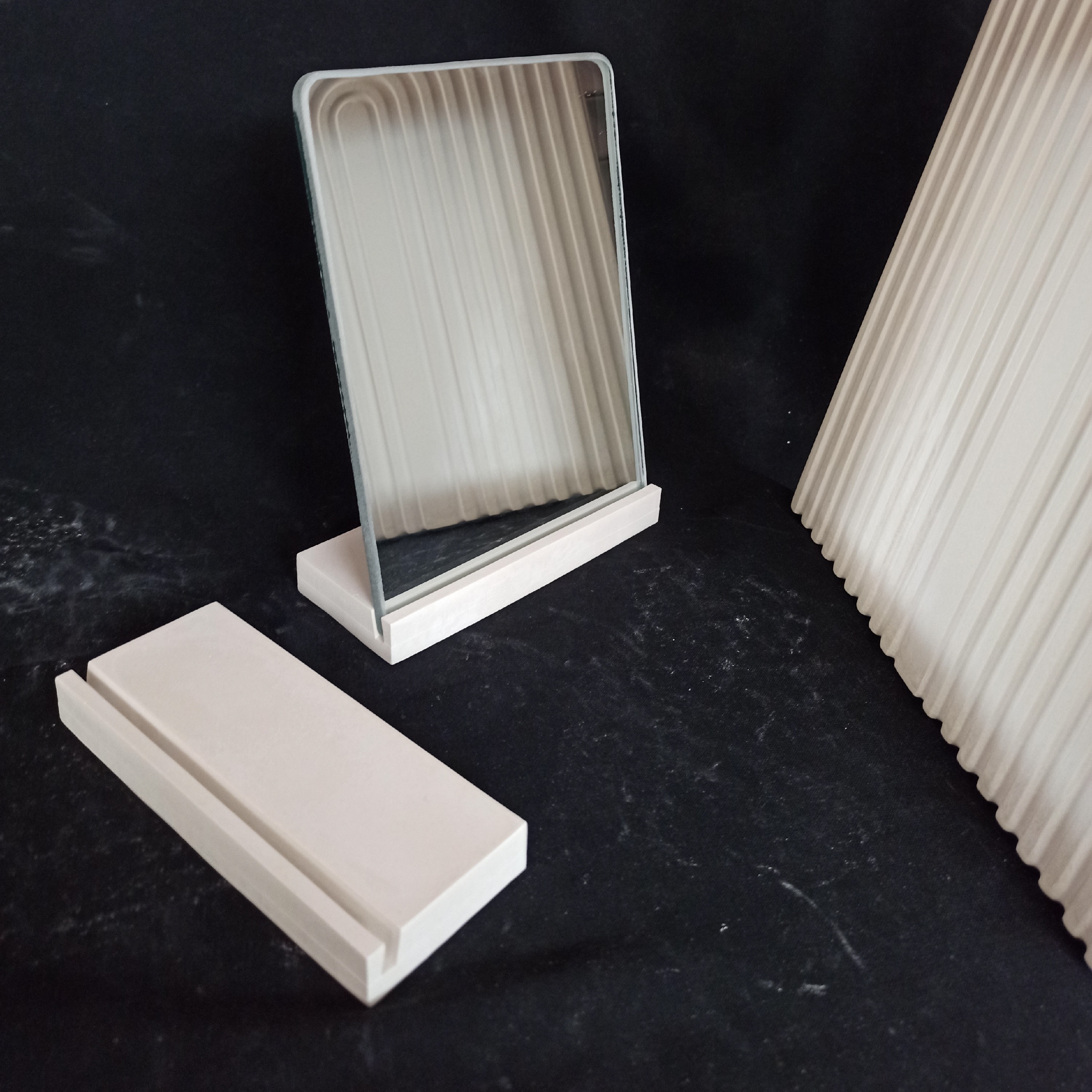 پایه آینه مستطیلی با آینه ، پایه اینه ، استند اینه ،پایه آینه سنگ مصنوعی ، پایه اینه بدون نیاز به قاب ، استند جای عکس مبلمونسرا مدل 264439