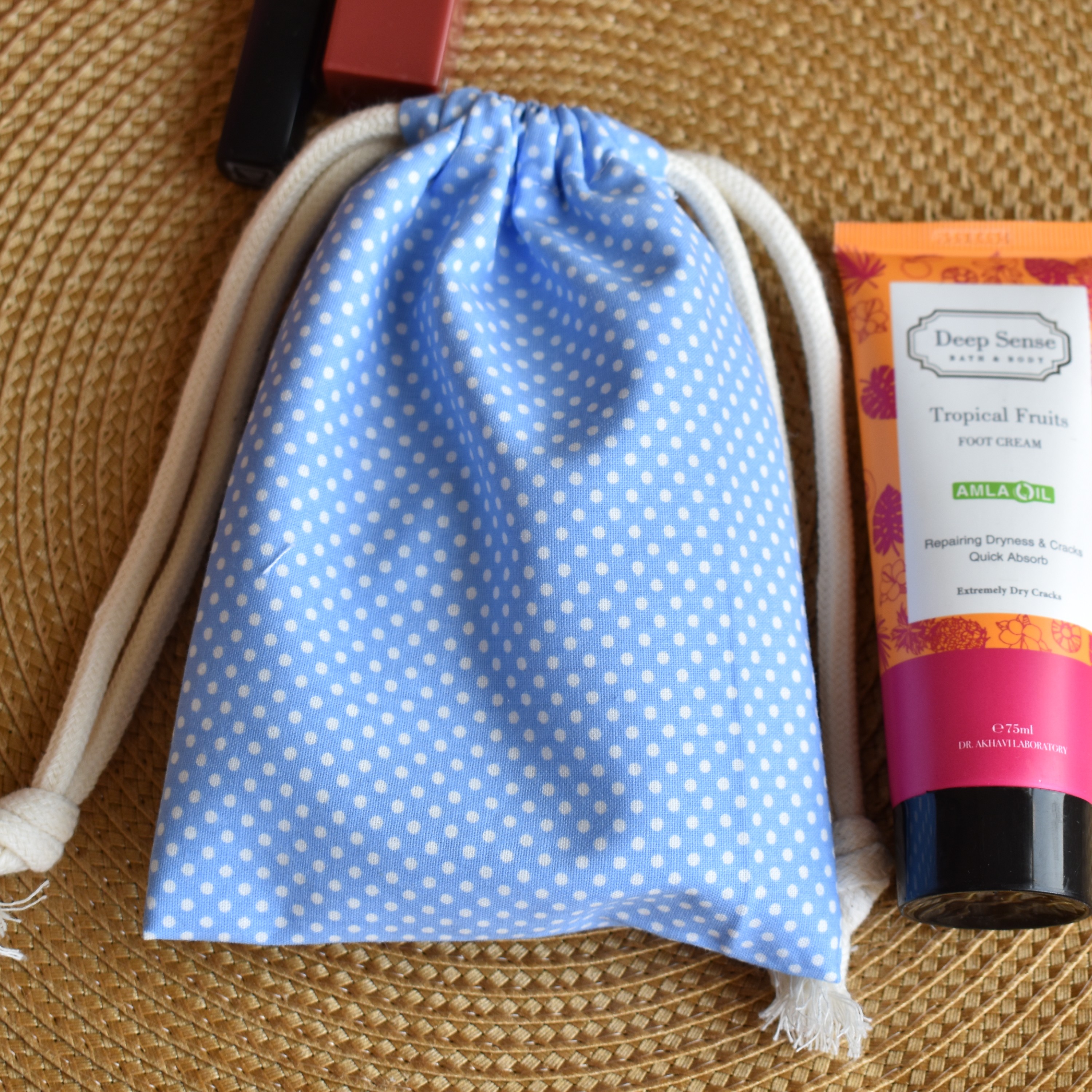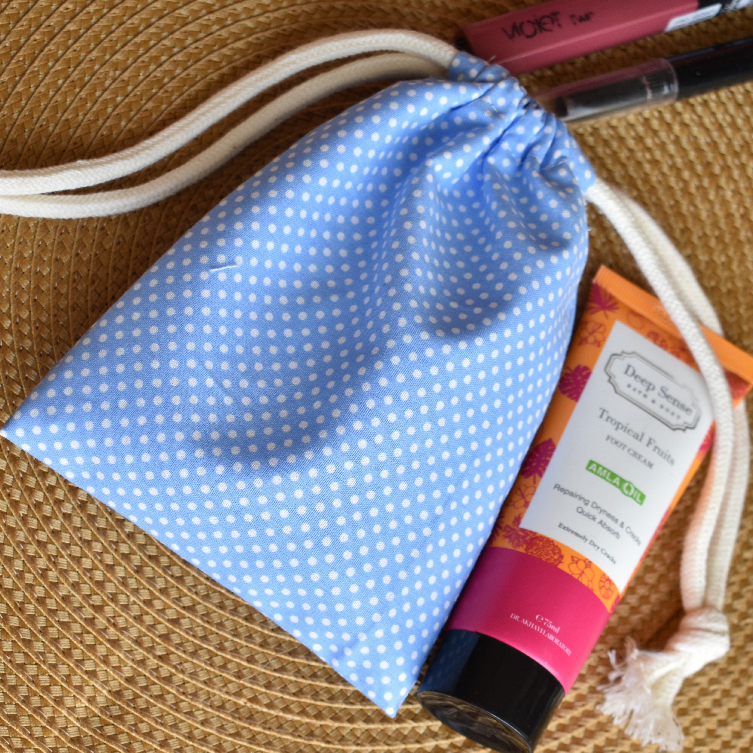 این محصول از جنس پارچهی نخی هستش دارای بند که قابلیت این رو میدن که از دو طرف جمع میشه قابل حمل ابعاد مناسب برای قرارگیری در کیف مورد استفاده برای جای شارژر لوازم ارایش دم دستی و هر وسیله ای که نیاز دارید🙂