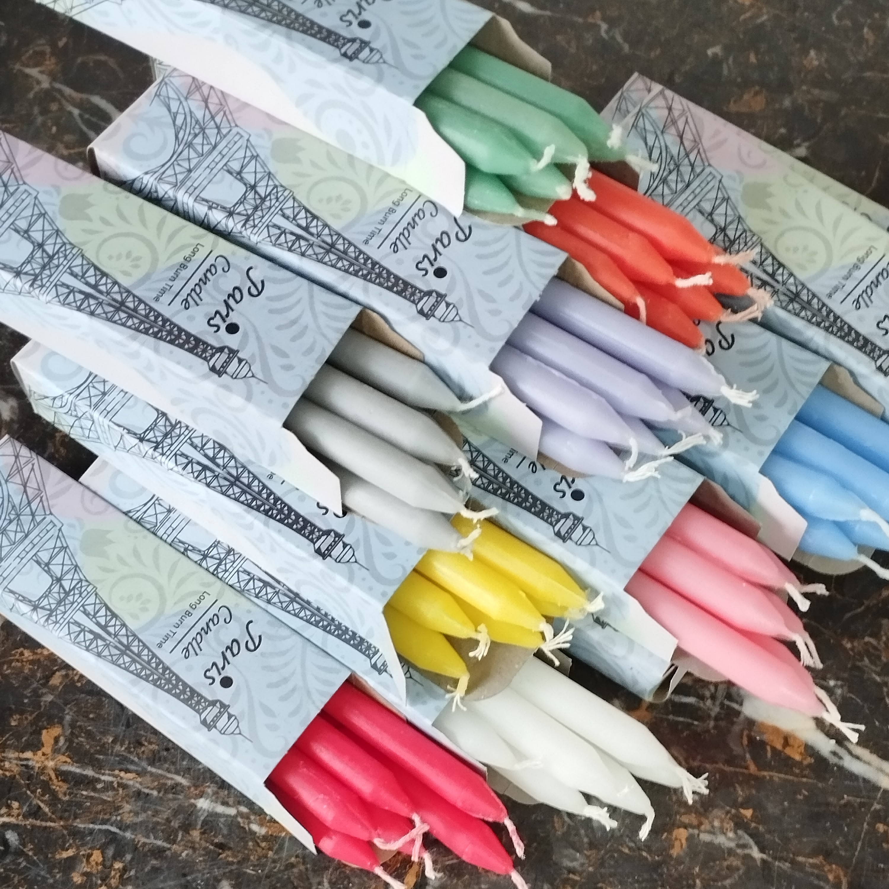 شمع قلمی 10 سانتی با قطر یک سانت تهیه شده از پارافین یک درصد با تایم سوخت بالای یک ساعت بدون اسید و فیتیله تمام پنبه در ده رنگ متنوع ، شمعها مغز رنگی هستن و روکش رنگ نیستند یعنی داخل شمع همرنگ بیرون شمعه مخصوص شمع تراپهای عزیز ، یوگاکارهای محترم و دوستانی که مدیتیشن انجام میدهند