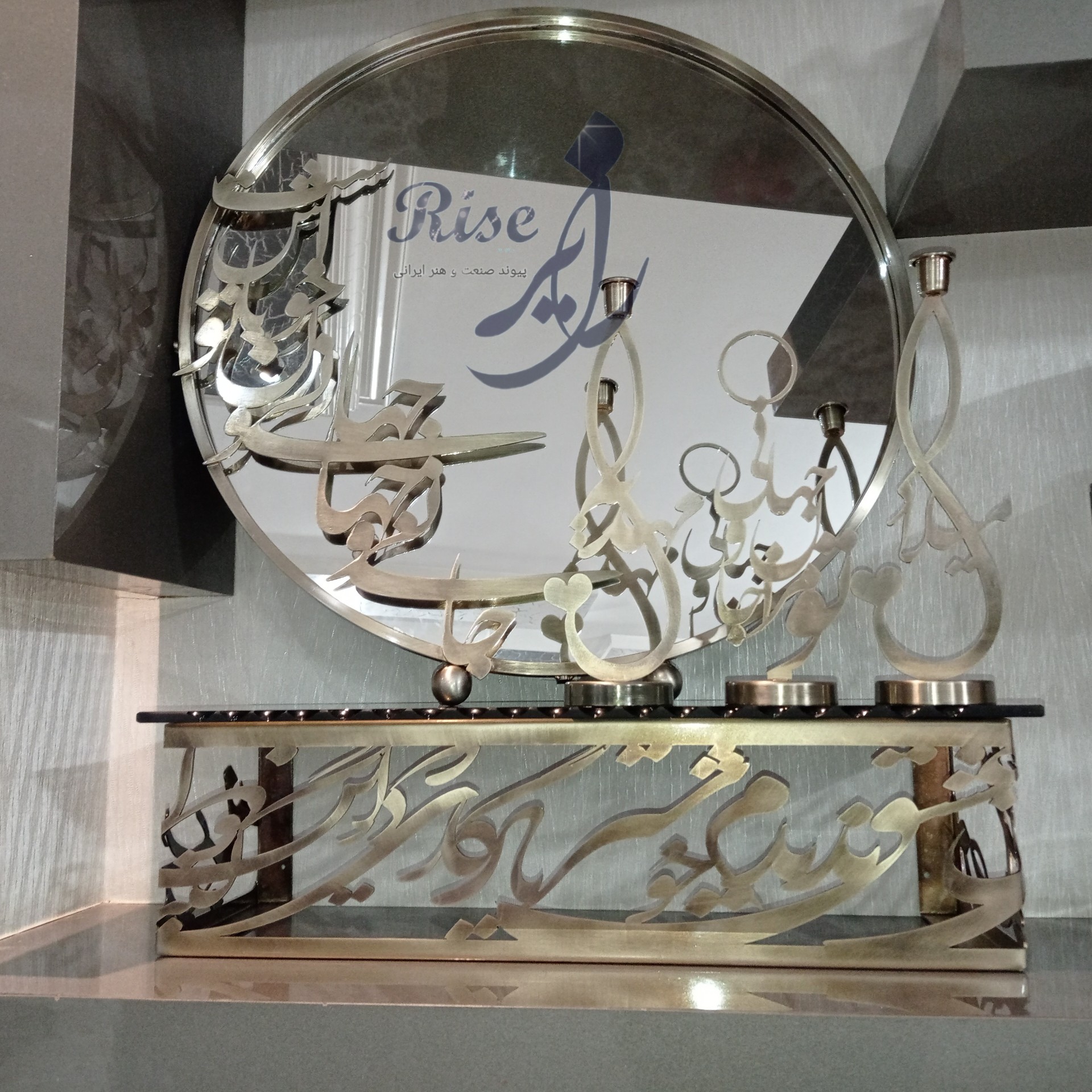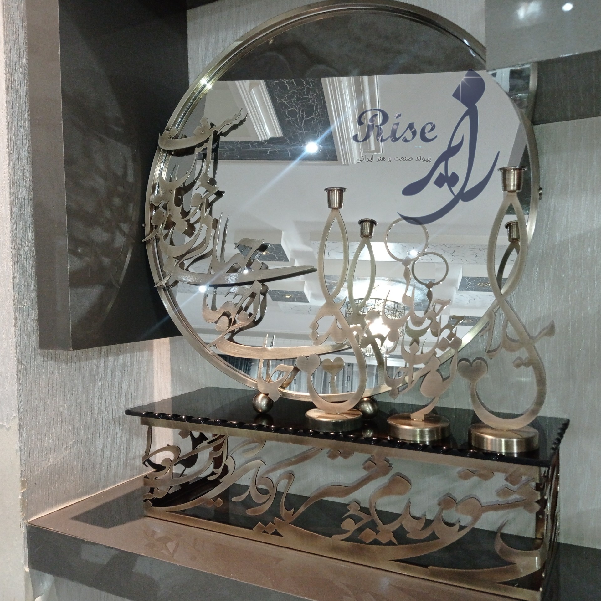 ست چهار تکه آینه شمعدون وکنسول نوشته دار کالیگرافی مبلمونسرا مدل 260948