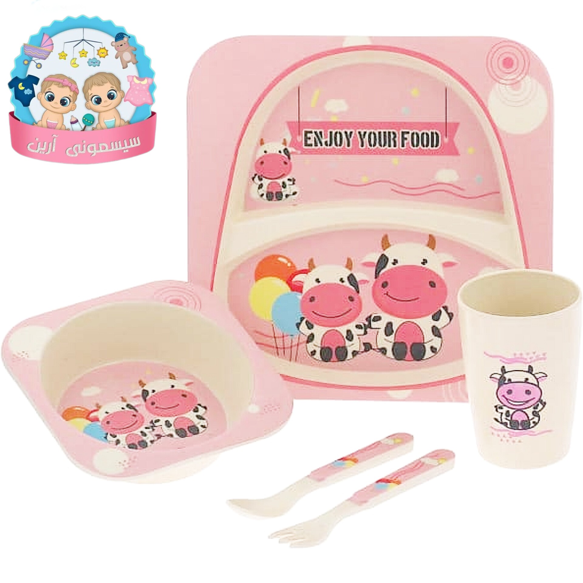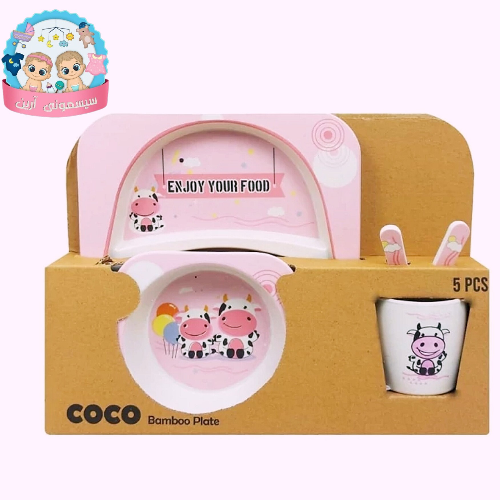 ست ظرف غذای بامبو کودک 5تیکه کوکو coco bamboo طرح گاو cow سرویس غذاخوری سیسمونی نوزاد مبلمونسرا مدل 288997