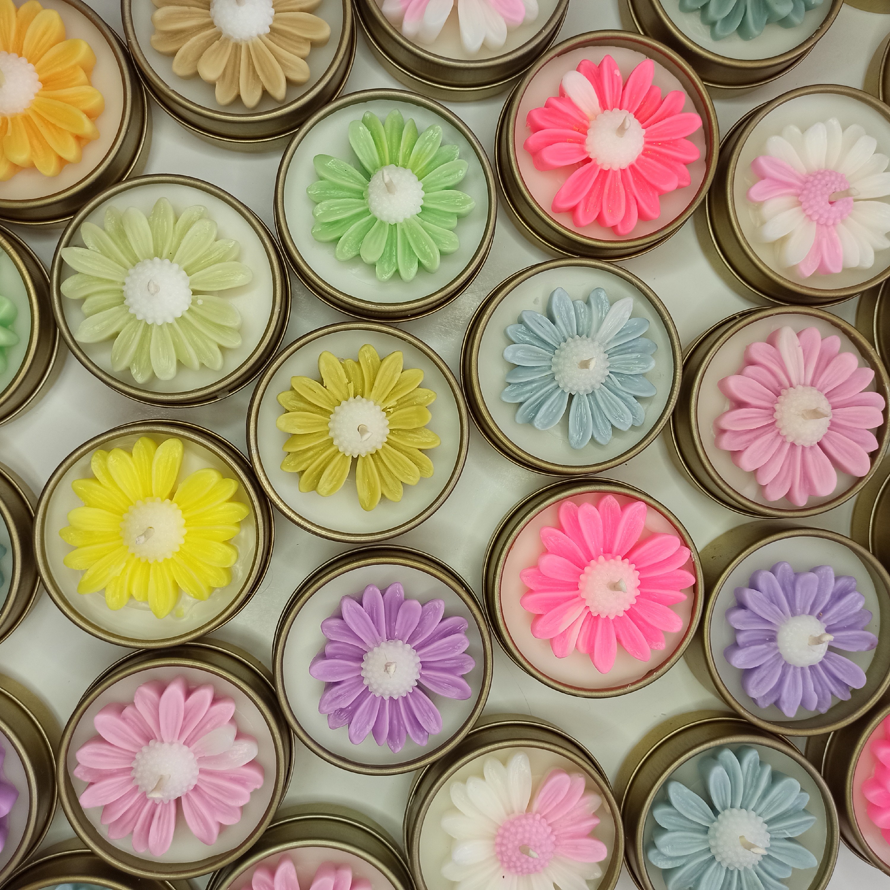 شمع قوطی مارگاریت معطر با رایحه مختلف و رنگ بندی مختلف قطر قوطی حدود 6سانتی متر