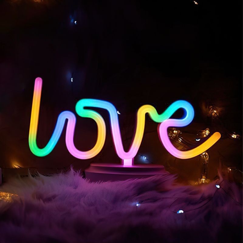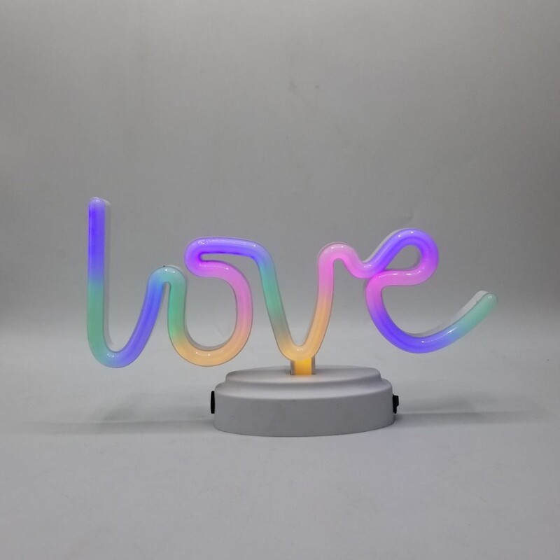چراغ خواب نئونی طرح love رنگین کمانی چندرنگ که با دو حالت باطری خور و شارژی کار میکند و دارای کابل شارژ Usb نیز میباشد. این چراغ خواب دکوری و تزئینی رومیزی وارداتی و محصول کشور چین میباشد.
