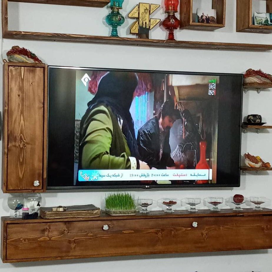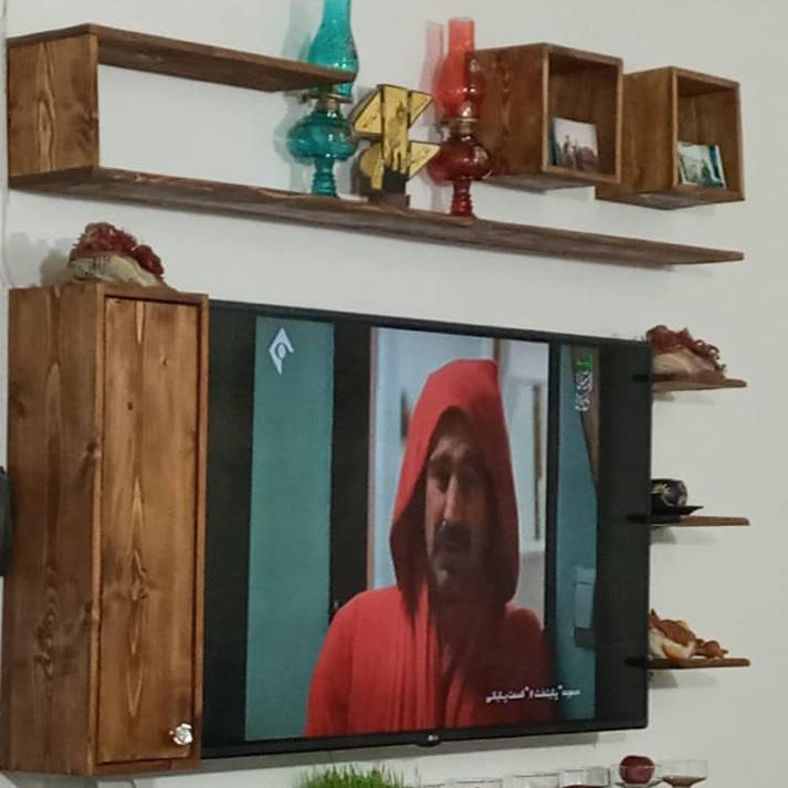 میز تلویزیون چوبی دیواری مناسب برای نصب بر روی دیوار در ابعادوطرح های متفاوت که فضای زیبایی رو به منزل القا میکند سفارش پذیرفته میشود