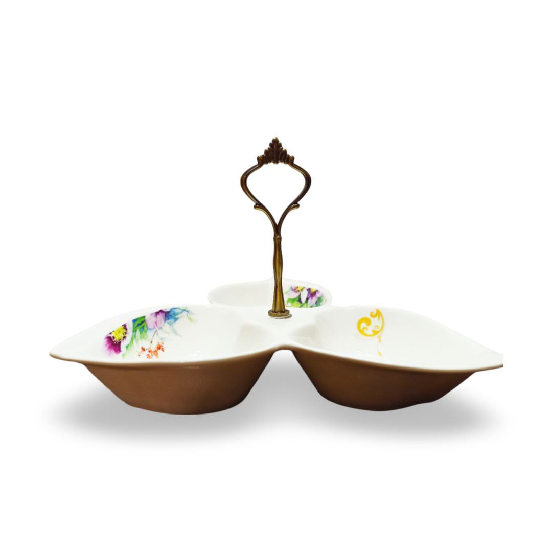 بسیار با کیفیت؛برند bvk؛مدل ۳ خانه؛طراحی بسیار زیبا و خاص؛دسته فلزی تمام طرح؛مناسب شکلات،تنقلات،ترشی و..؛دارای پکیج جعبه؛ابعاد هر خانه ۱۰ سانت و ارتفاع داخلی ۴ سانت؛ابعاد پکیج ۲۵×۲۵ سانت؛رنگ بندی چند رنگ گلدار؛قابلیت شستشو در ماشین ظرف شویی و با دست؛قابلیت گذاشتن داخل مایکروویو؛رنگ ثابت؛بهترین هدیه؛مناسب هر سنو سلیقه 💥عکس های کالا،عکس واقعی از محصول هستند که توسط تیم جورواجور گرفته و تهیه شده است 💥کالا با بالاترین کیفیت و محکم ترین روش بسته بندی میشود به خصوص کالاهای بزرگ و شکستنی اما در صورت آسیب دیدگی در ارسال،غیر قابل مرجوع یا تعویض میباشد 💥کالا شامل شکستنی و سایز بزرگ میباشد به علت ارسال سالم با ماهکس یا چاپار ارسال میشود 💥در صورت سفارش کالا همراه پکیج کادویی و مناسبتی مانند کاغذ کادو،باکس،ساک هدیه،جعبه کادویی با تیم پشتیبانی جورواجور ارتباط برقرار کنید 🌈ممنون میشیم بعد از خرید با ثبت نظر و امتیاز به پیشرفت ما کمک کنین برامون بسیار باارزشه