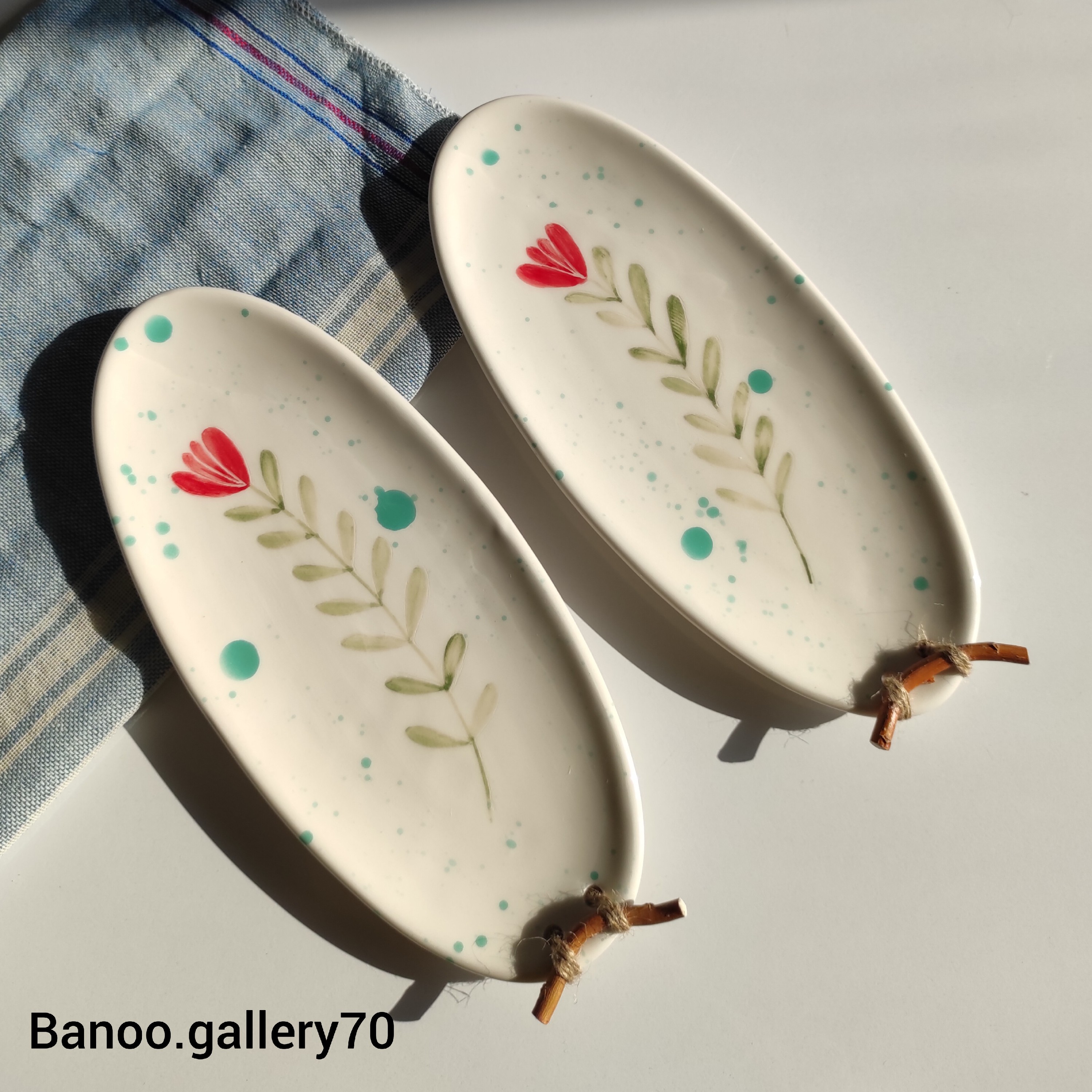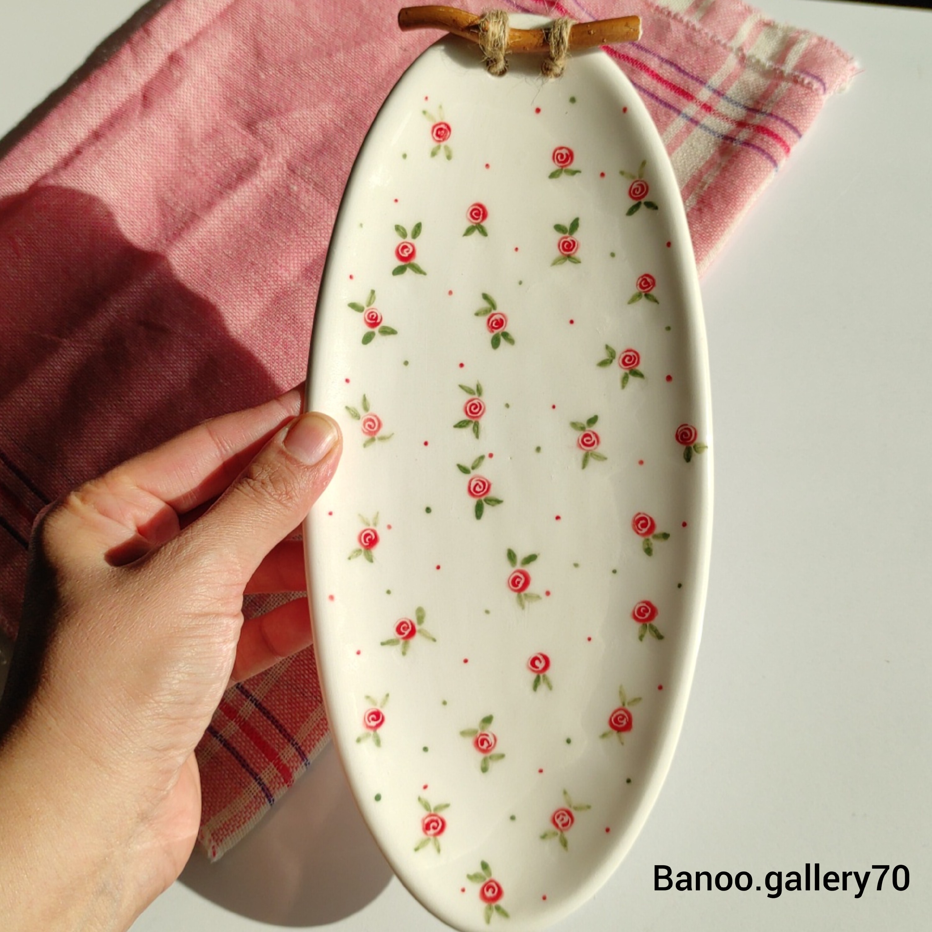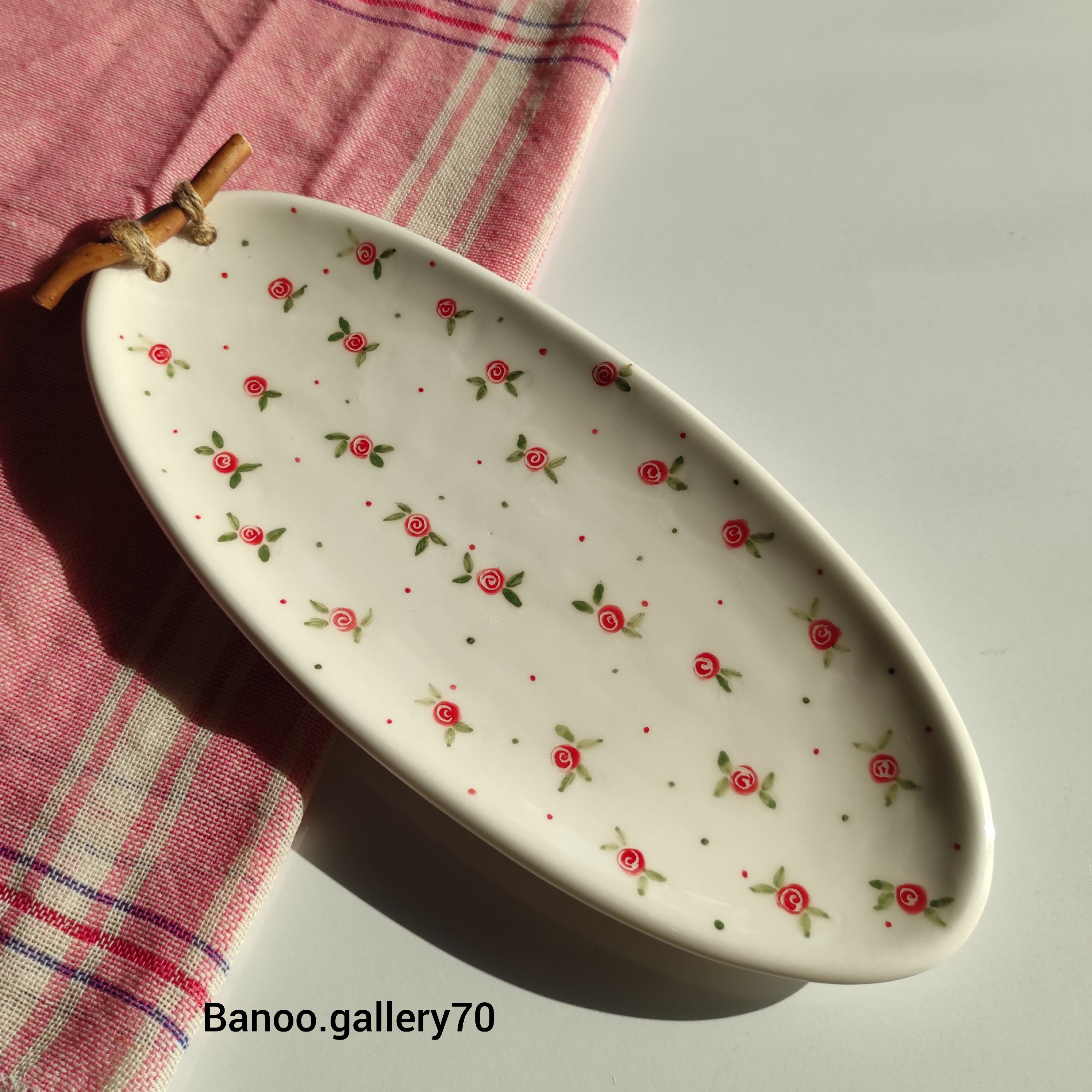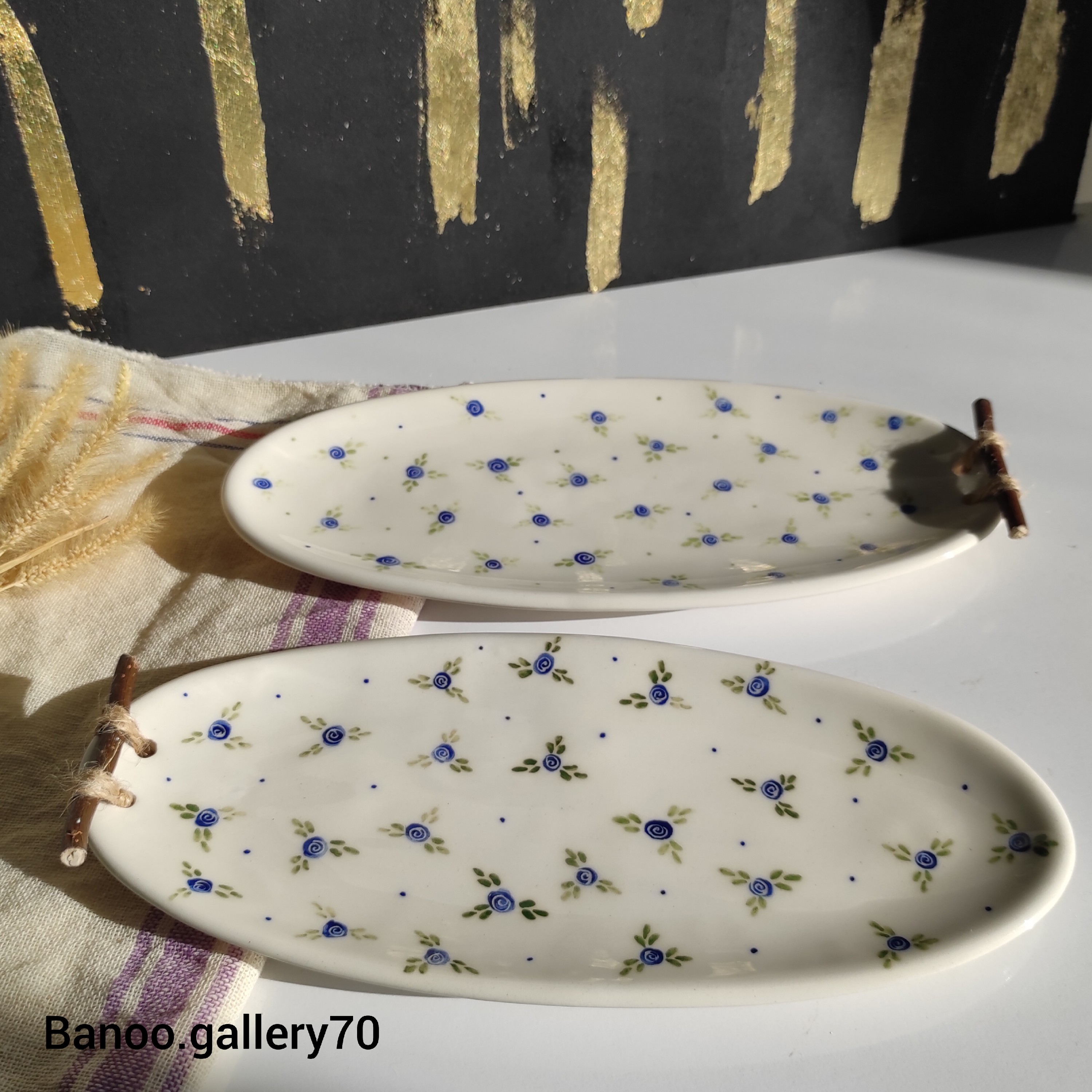 رولت خوری سرامیکی دستساز لعاب خورده و کاملا مصرفی نقاشی شده با تکنیک زیر لعابی