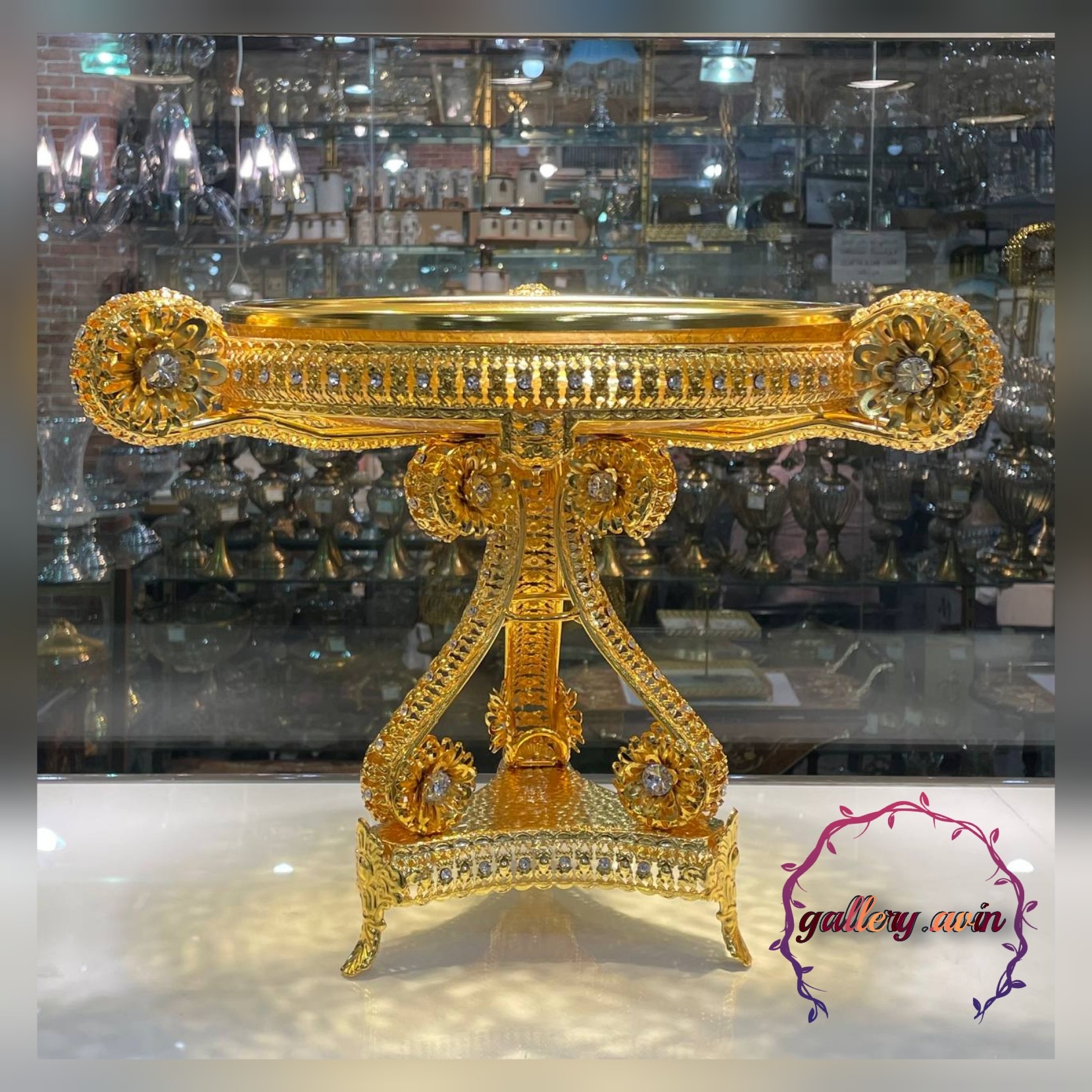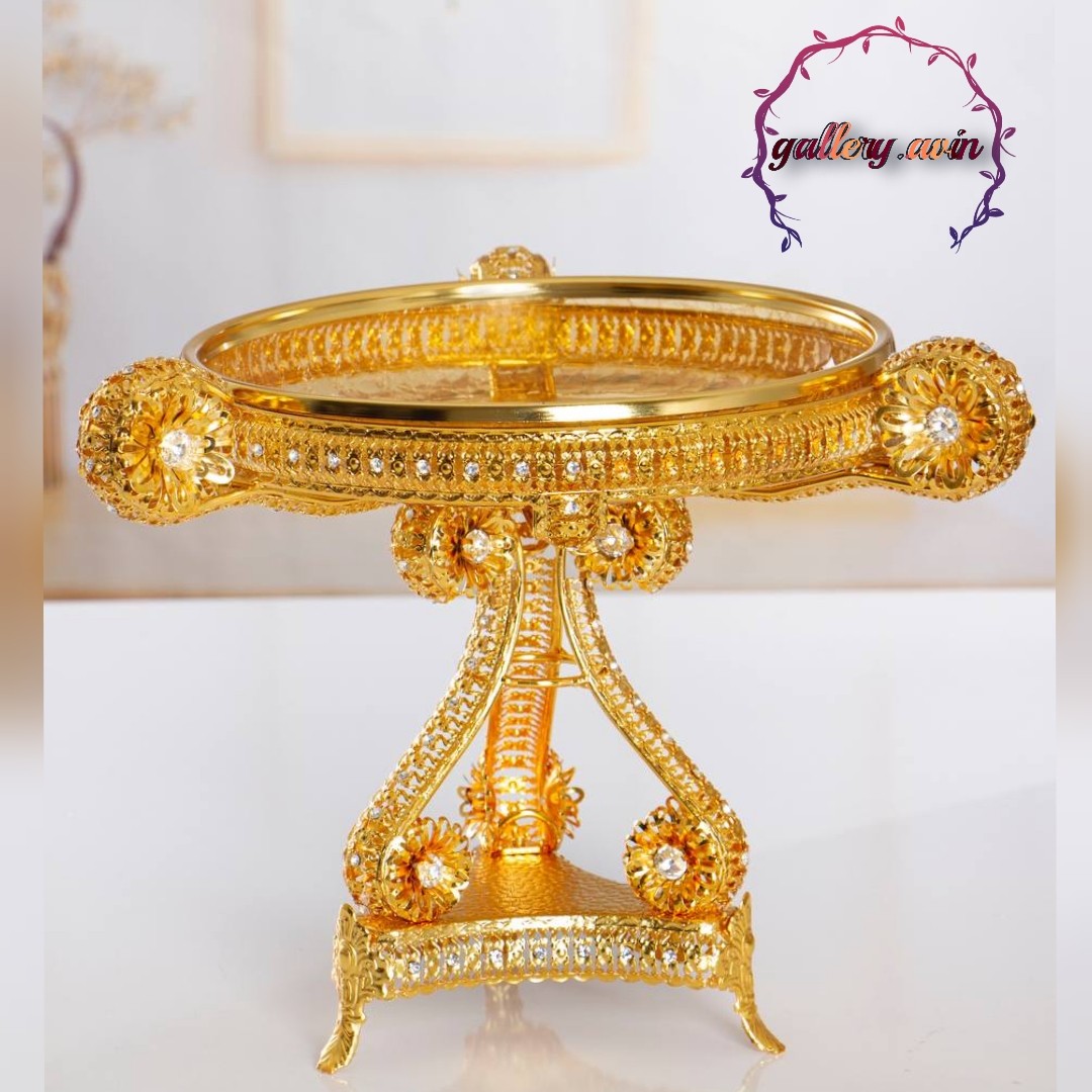 شیرینی خوری پایه دار طلایی نگین دار جدید شیشه تَرَک خاص پسند مبلمونسرا مدل 264795