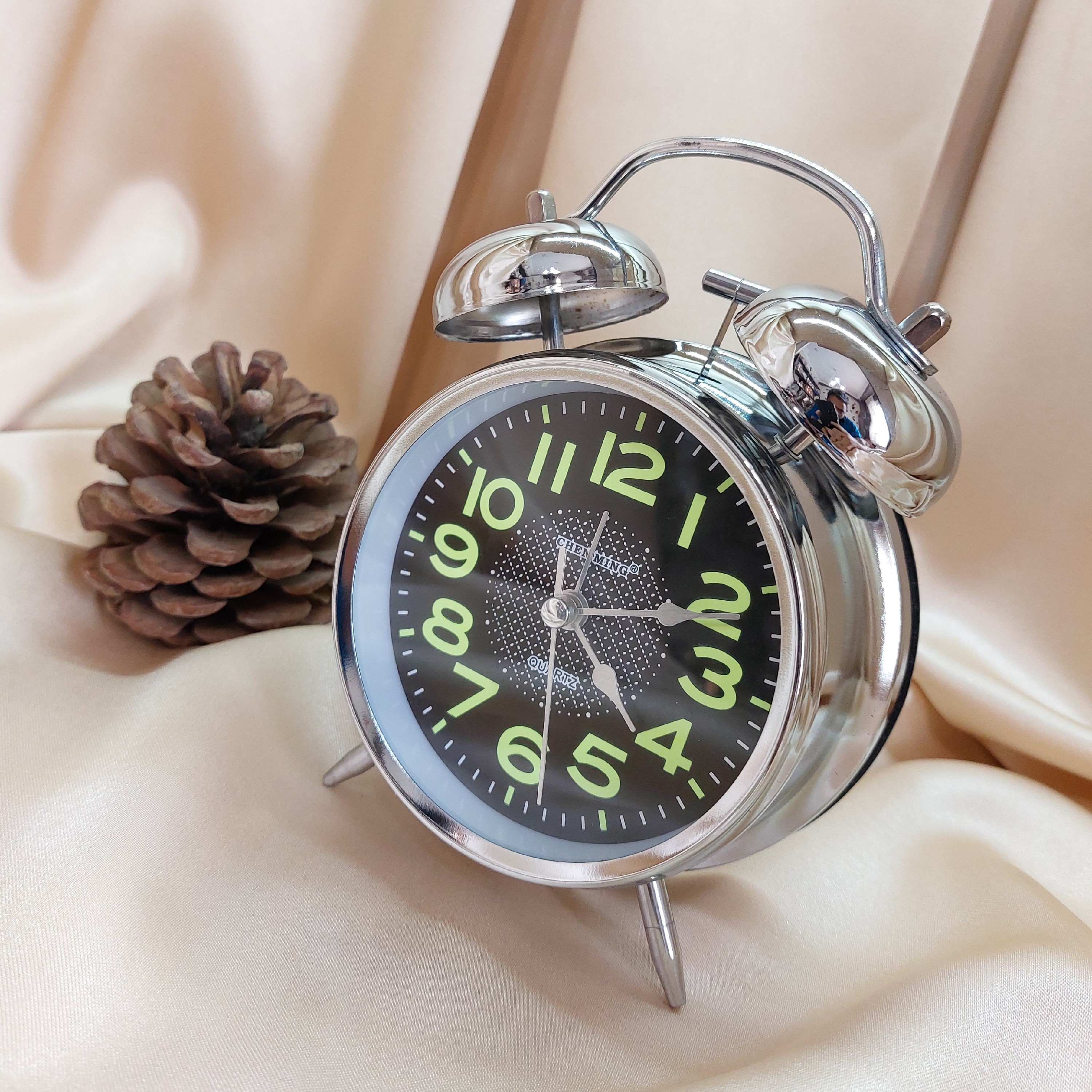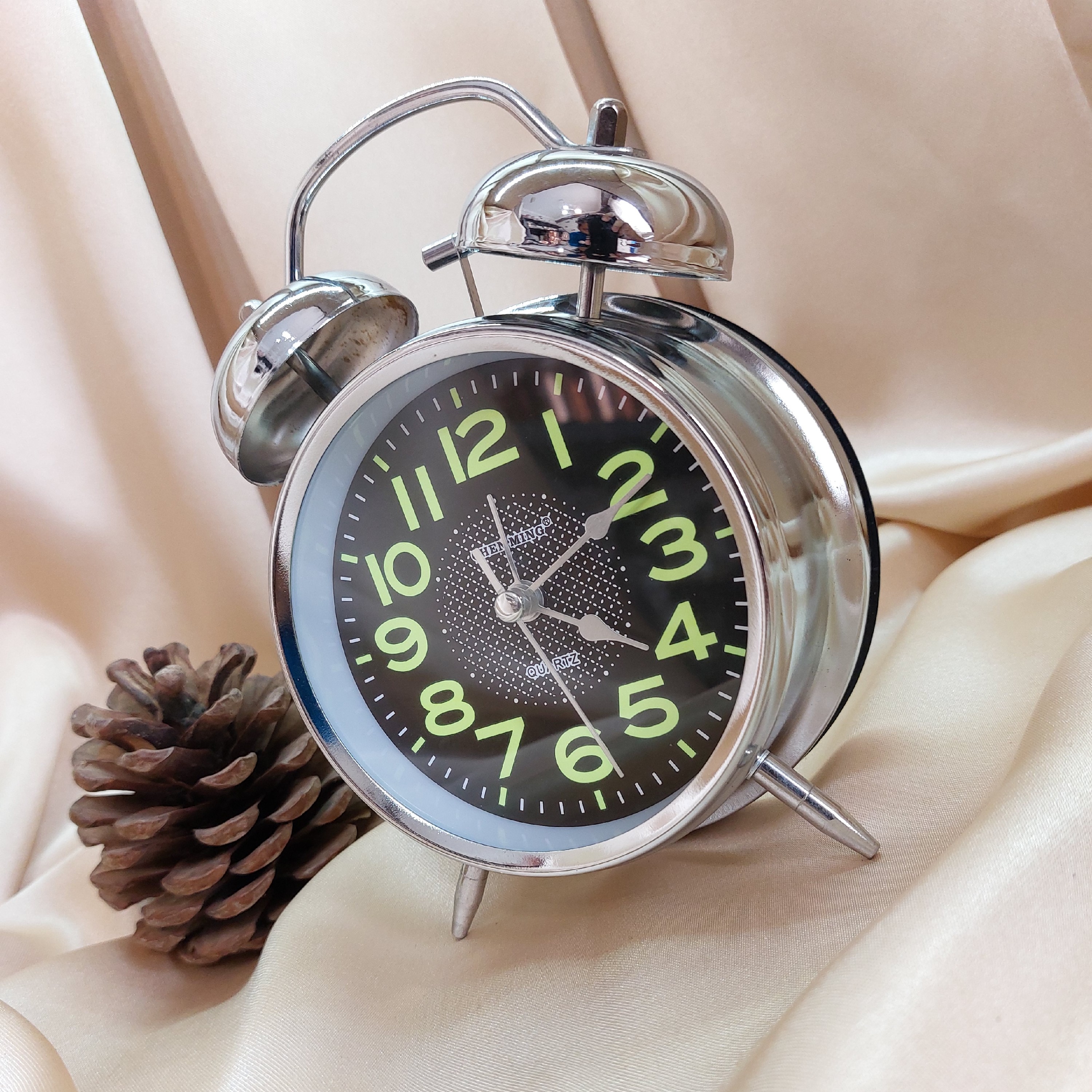ساعت رو میزی زنگدار استیل - ساعت چراغدار- ساعت آبکاری زنگدار- ارتفاع 16 سانت مبلمونسرا مدل 238178