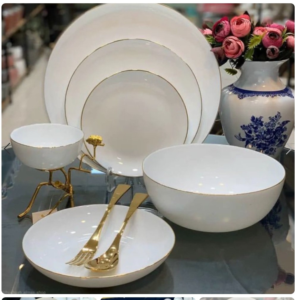 سرویس آرکوپال سفید ساده گرد کلاسیک لب طلا برند دینو مقصود آنتی شوک آنتی باکتریال قابل استفاده در فر و ماشین ظرفشویی لب طلا ی با کیفیت شامل شش پلو و خورشت خوری وپیش دستی و پیاله یک عدد دیس و یک عدد کاسه بزرگ + 4 عدد اشانتیون ###غیر قابل استفاده در مایکروویو ##