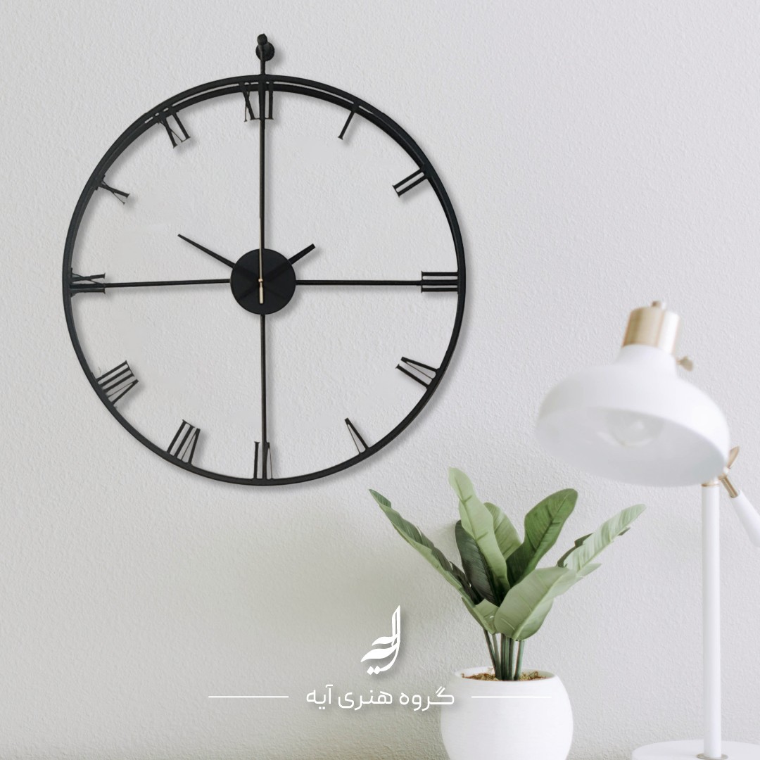 ساعت تمام فلزی مدرن، رنگ مشکی، قطر 60 سانتی متر، آبکاری مبلمونسرا مدل 237398