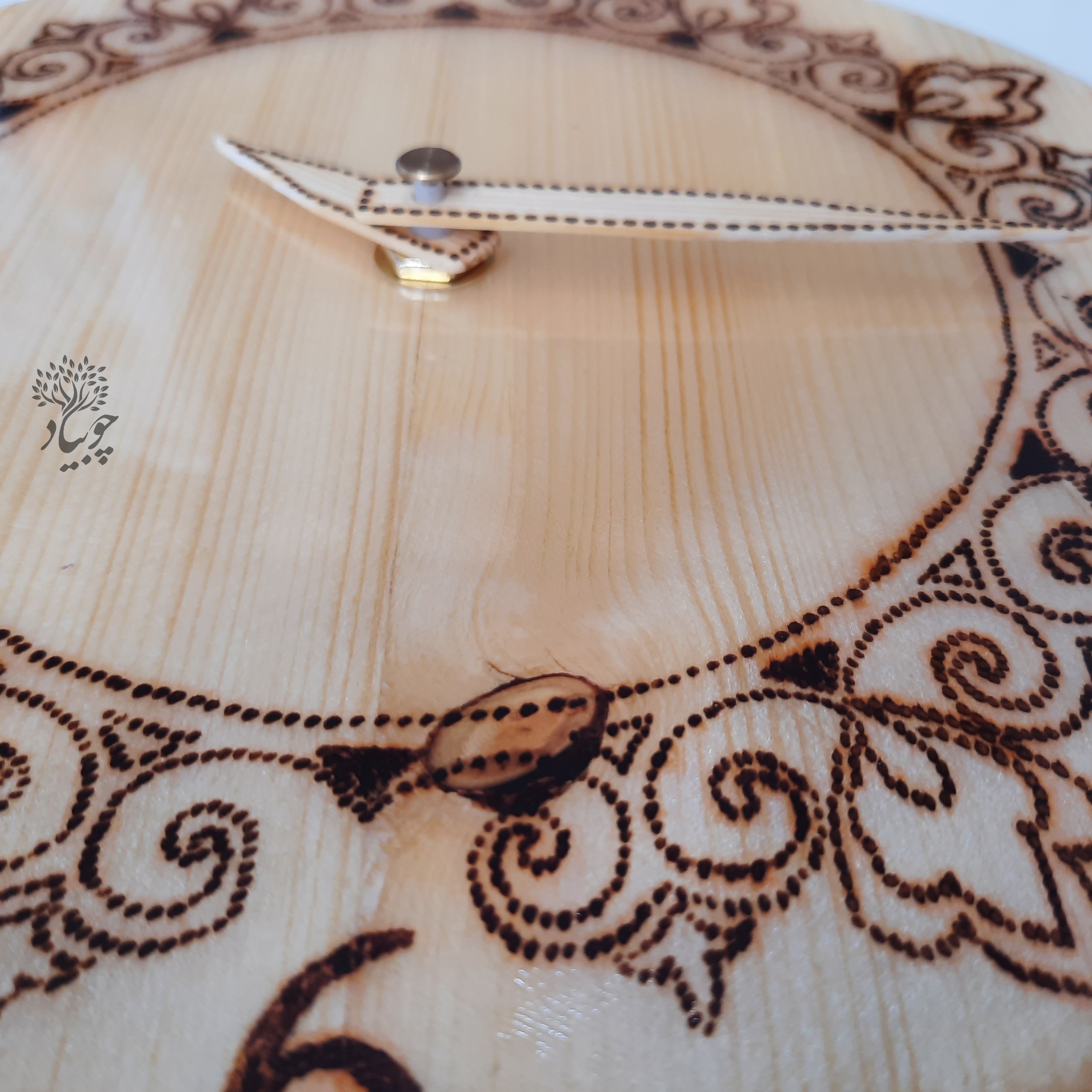 ساعت دیواری چوبی سوخته کاری شده برند چوبیاد موتور آرامگرد مبلمونسرا مدل 239300