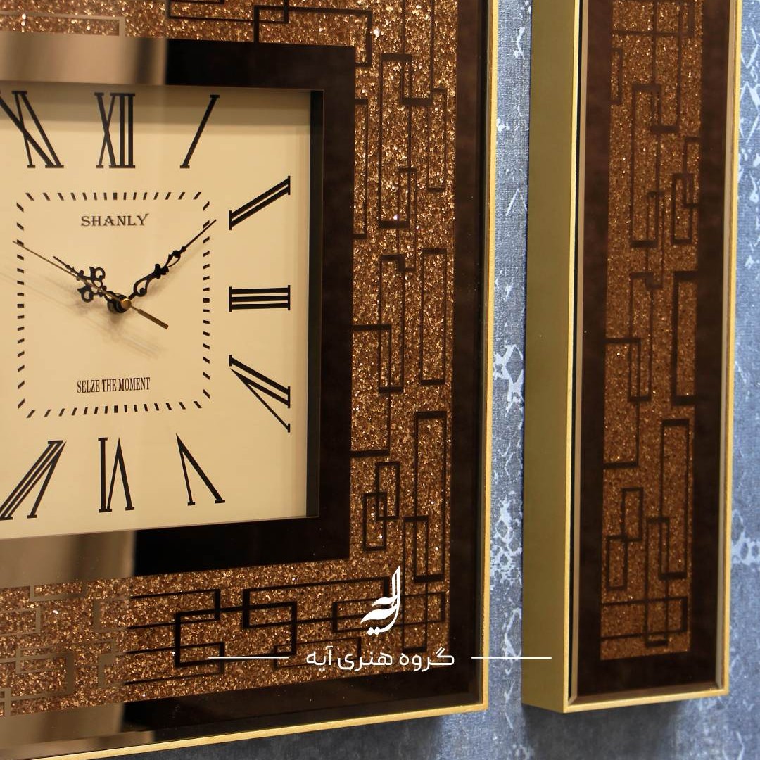 ساعت دیواری آینه ای مربع مستطیل برنز نگین برنز مبلمونسرا مدل 239297