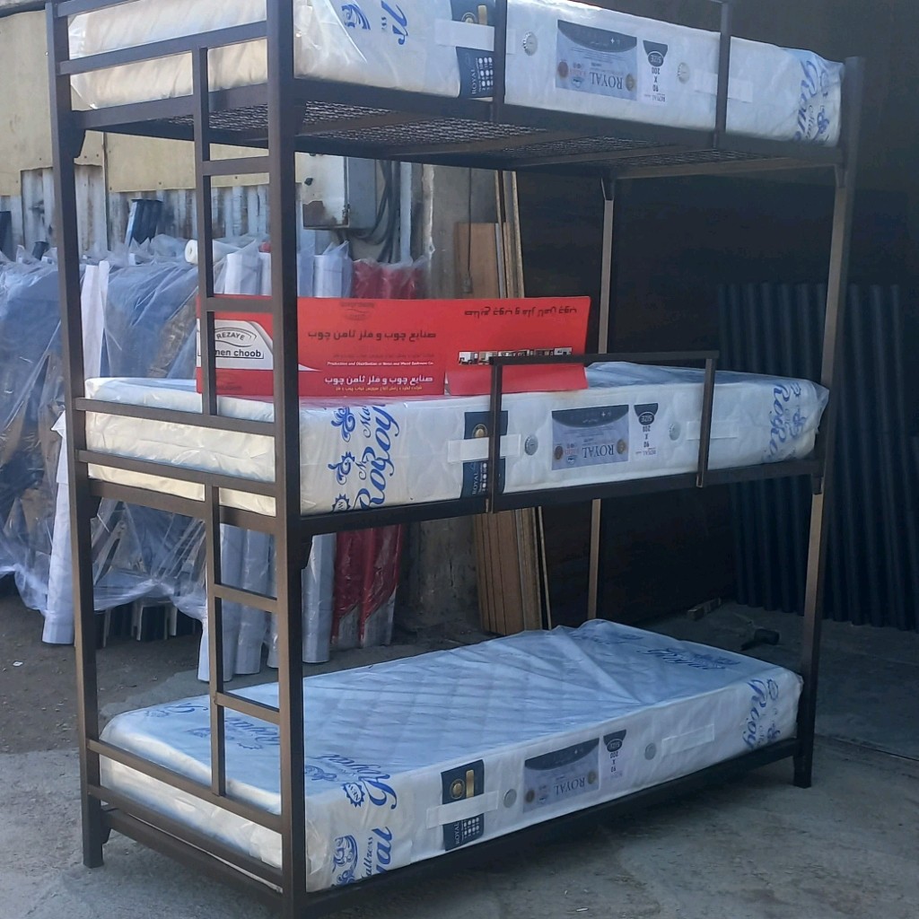 تخت خواب سه طبقه سربازی ۹۰ در ۲۰۰ ارتفاع کار ۲۴۰ سانتی متر کار محکم و با دوام کفی تخت کلا فلز در صورت موجود بودن همون روز ارسال میشود