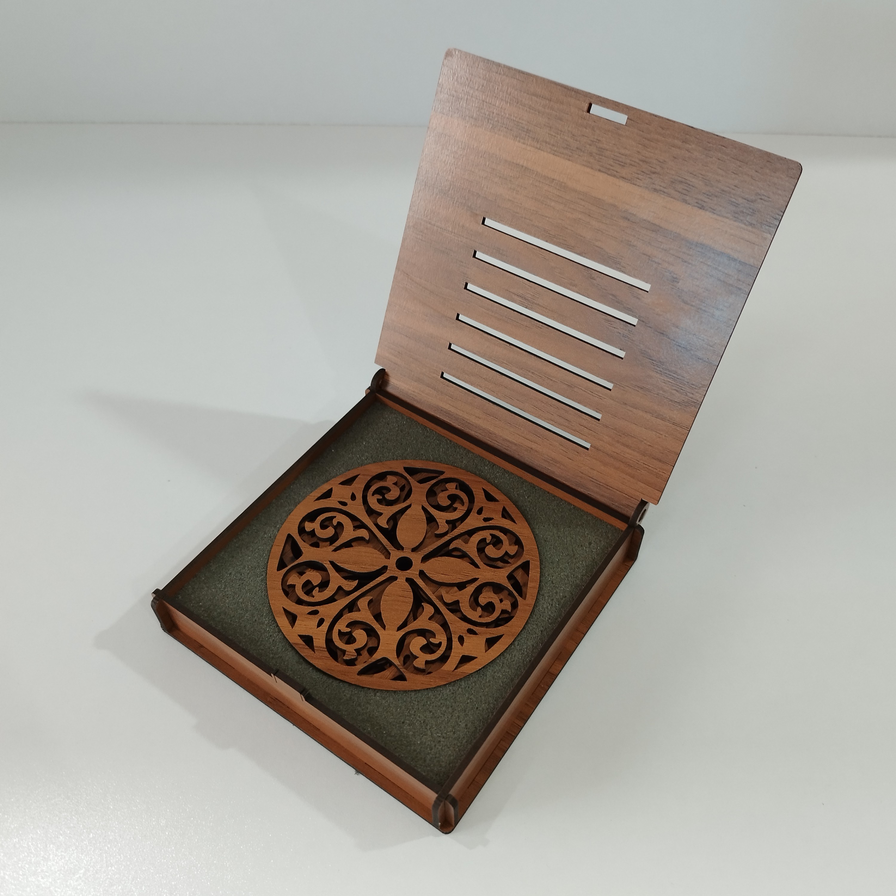 این مجموعه زیر لیوانی شامل ۶ عدد کفی و یک باکس که شما میتوانید زیر لیوانی های خودتان را داخل آن جاگذاری کنید یا روی آن قرار دهید ضخامت هر کفی ۳ میلیمتر میباشد جنس چوب کفی ها mdf مورد استفاده در مهمانی ها و محل کار هدیه ای زیبا برای عزیزان شما