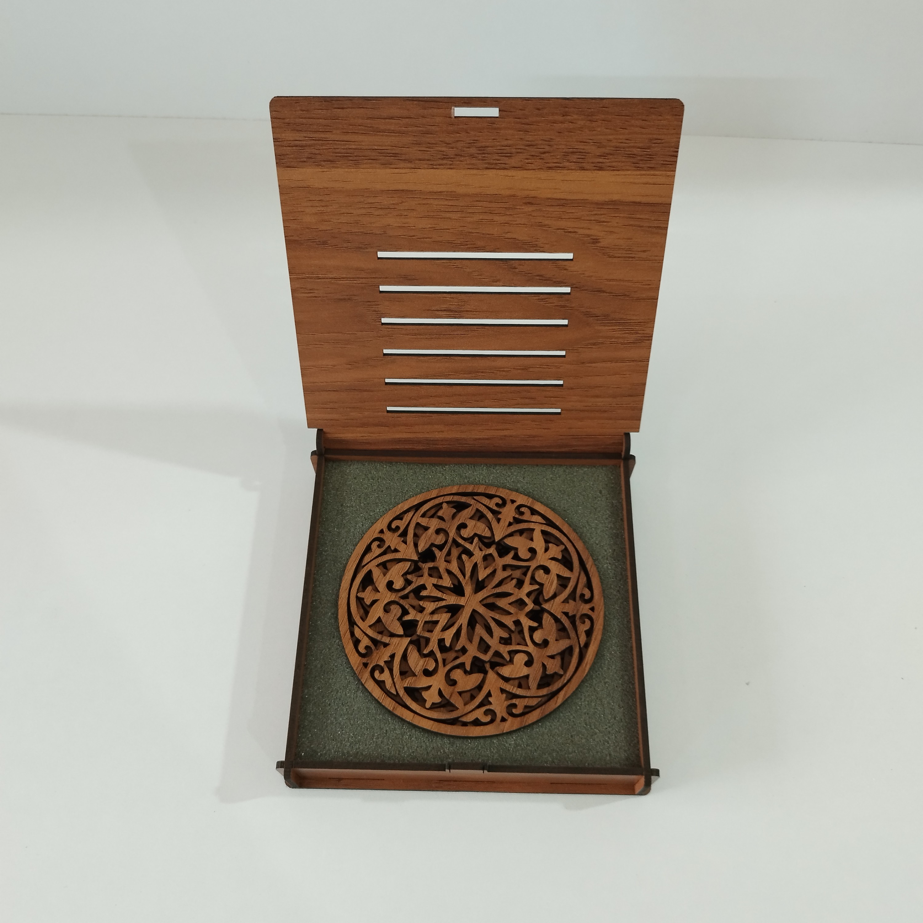 این مجموعه زیر لیوانی شامل ۶ عدد کفی و یک باکس که شما میتوانید زیر لیوانی های خودتان را داخل آن جاگذاری کنید یا روی آن قرار دهید ضخامت هر کفی ۳ میلیمتر میباشد جنس چوب کفی ها mdf مورد استفاده در مهمانی ها و محل کار هدیه ای زیبا برای عزیزان شما