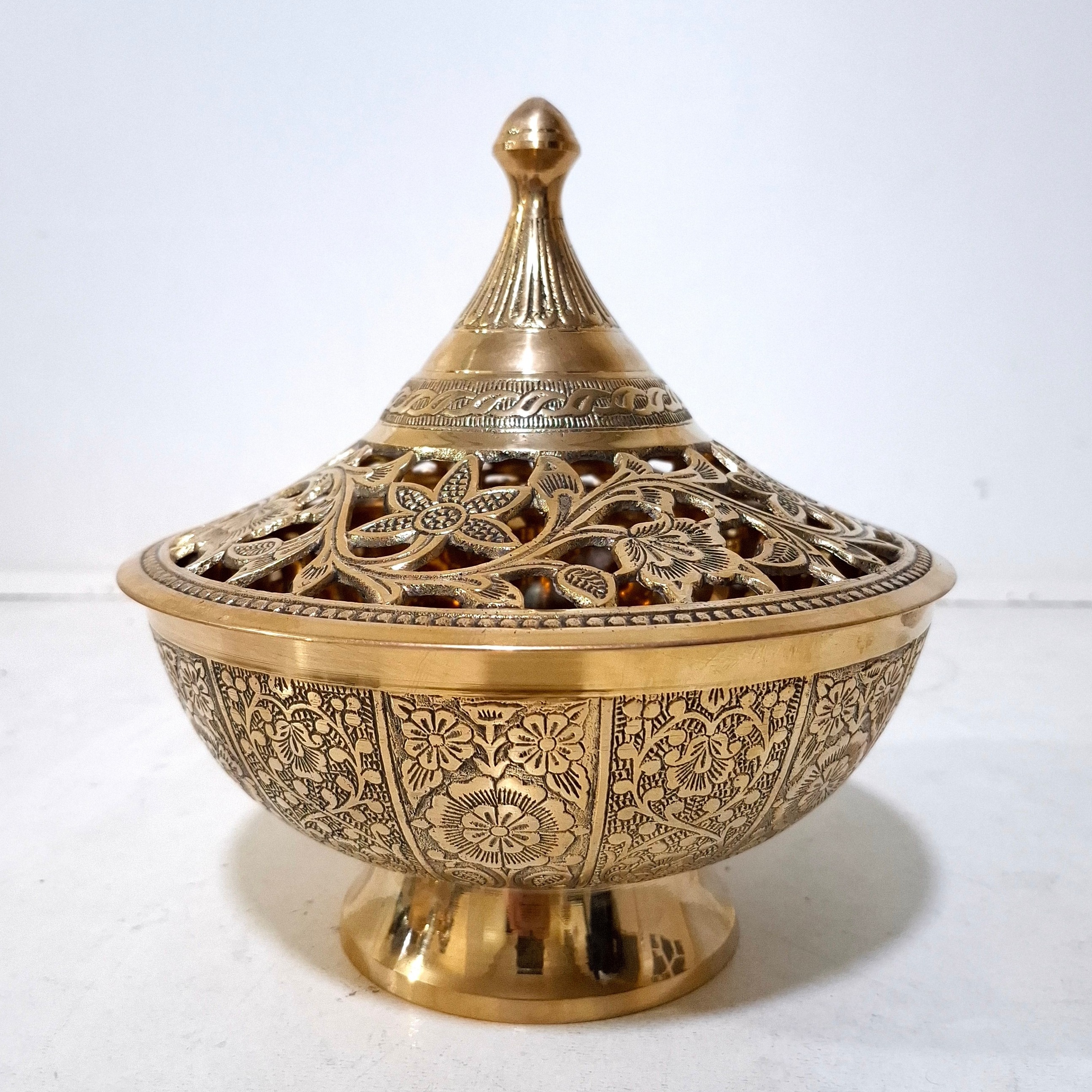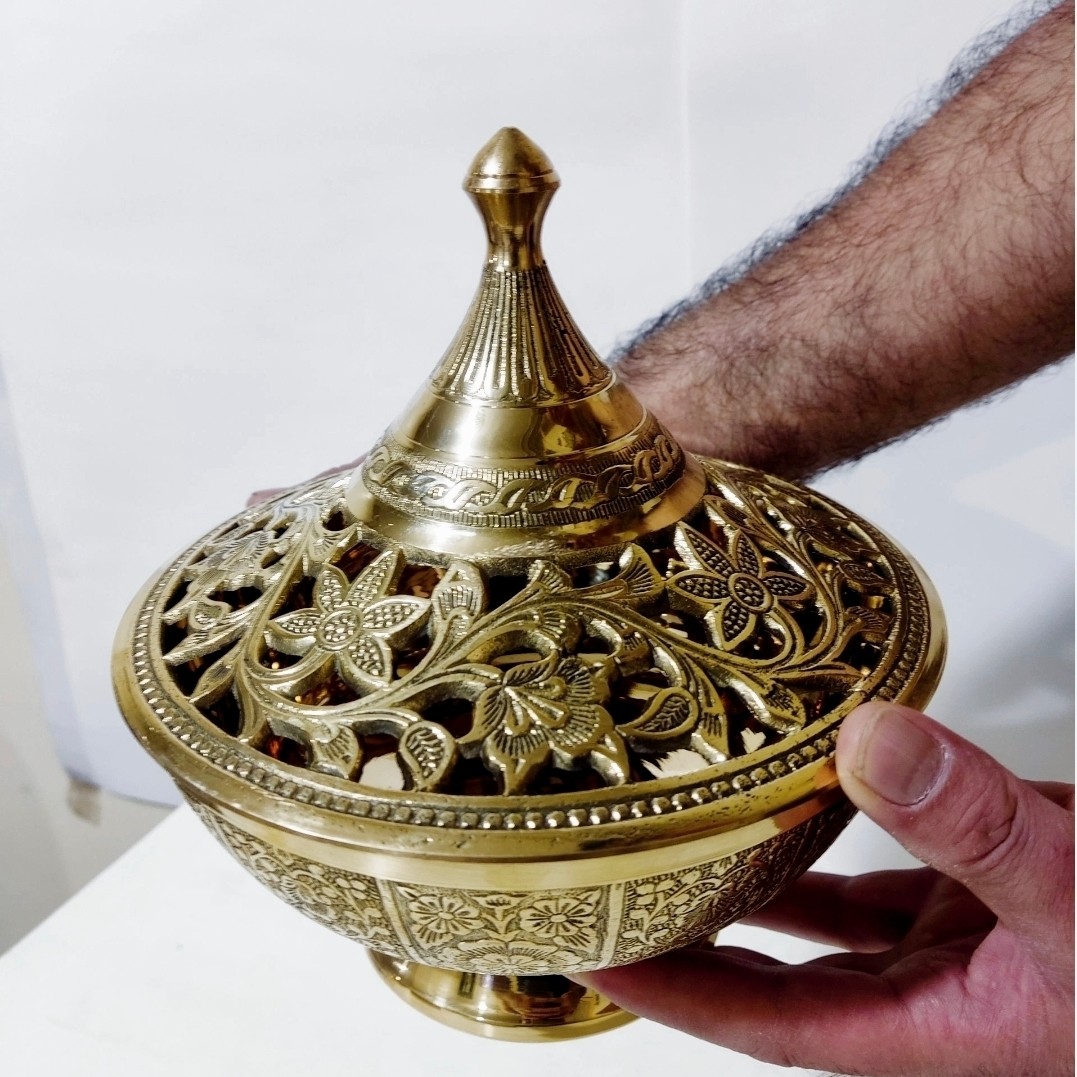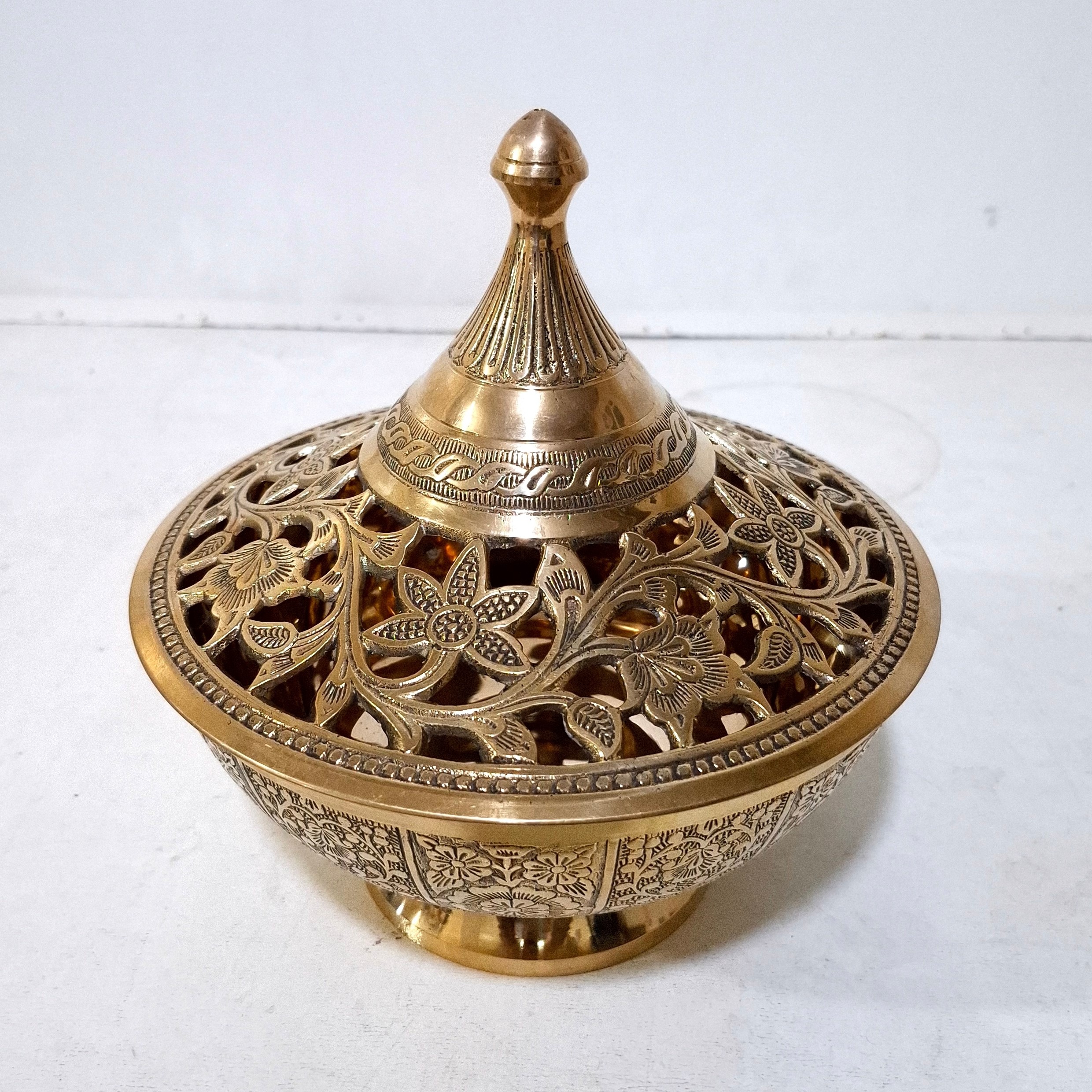 شکلات خوری برنجی هندی یا اجیل خوری برنجی هندی سایز بزرگ با قطر 20 سانت مدل مشبک شکلات خوری برنزی آجیل خوری برنز هندی مبلمونسرا مدل 295635