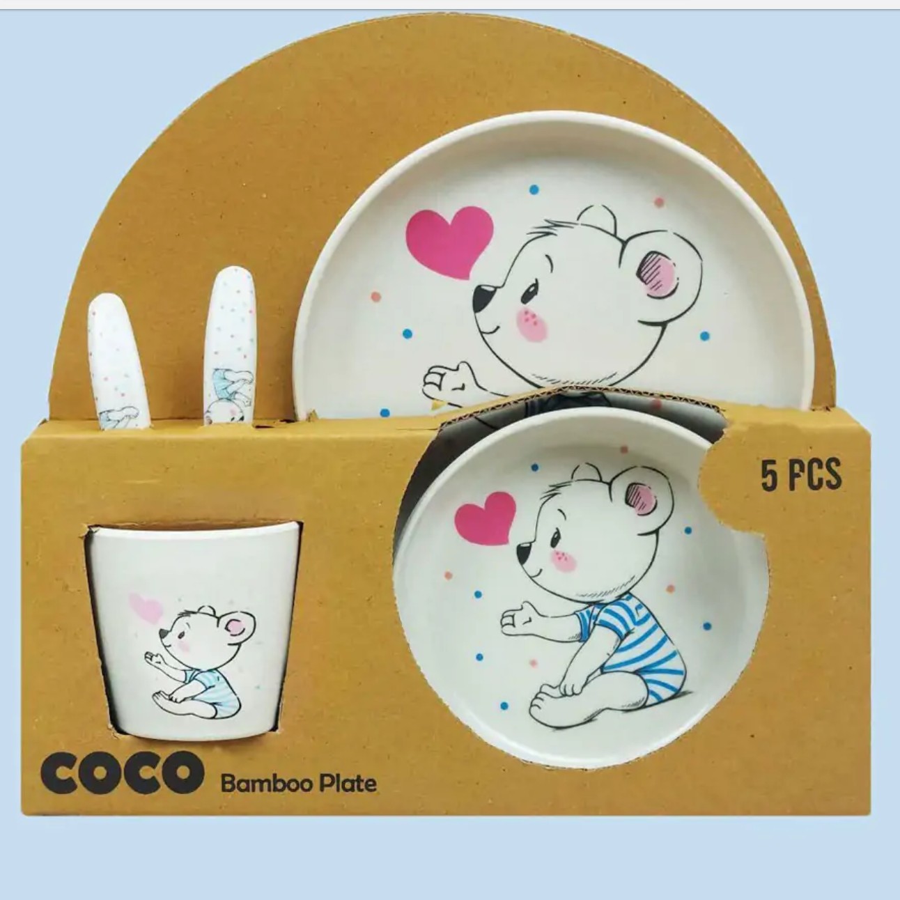 سرویس غذا خوری کودک 5 تکه. ساخته شده از فیبر بامبو. طرح ارگونومیک.فاقد BPA و مواد مضر. آنتی باکتریال. سبک. زیبا. شاد مبلمونسرا مدل 289354