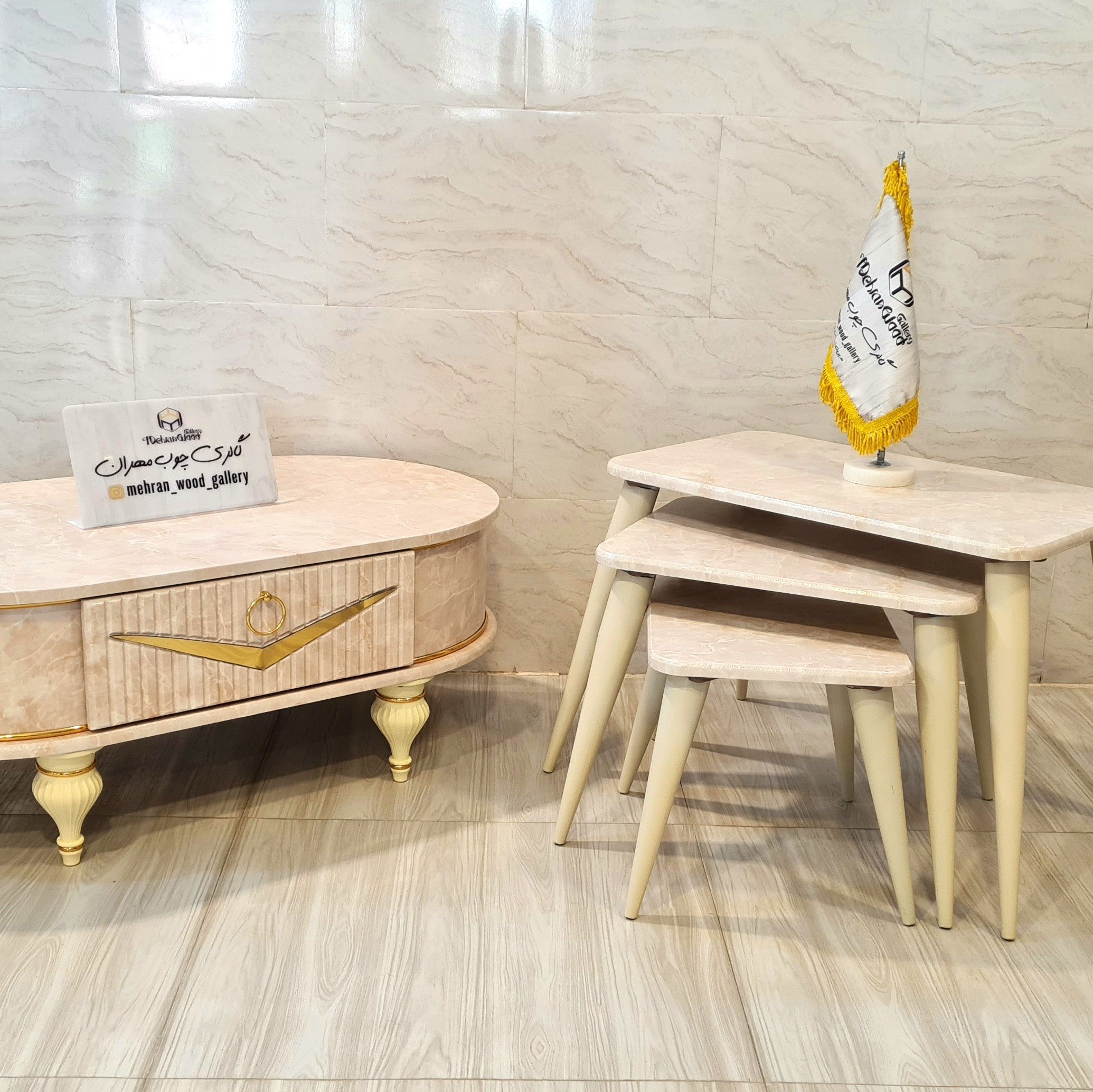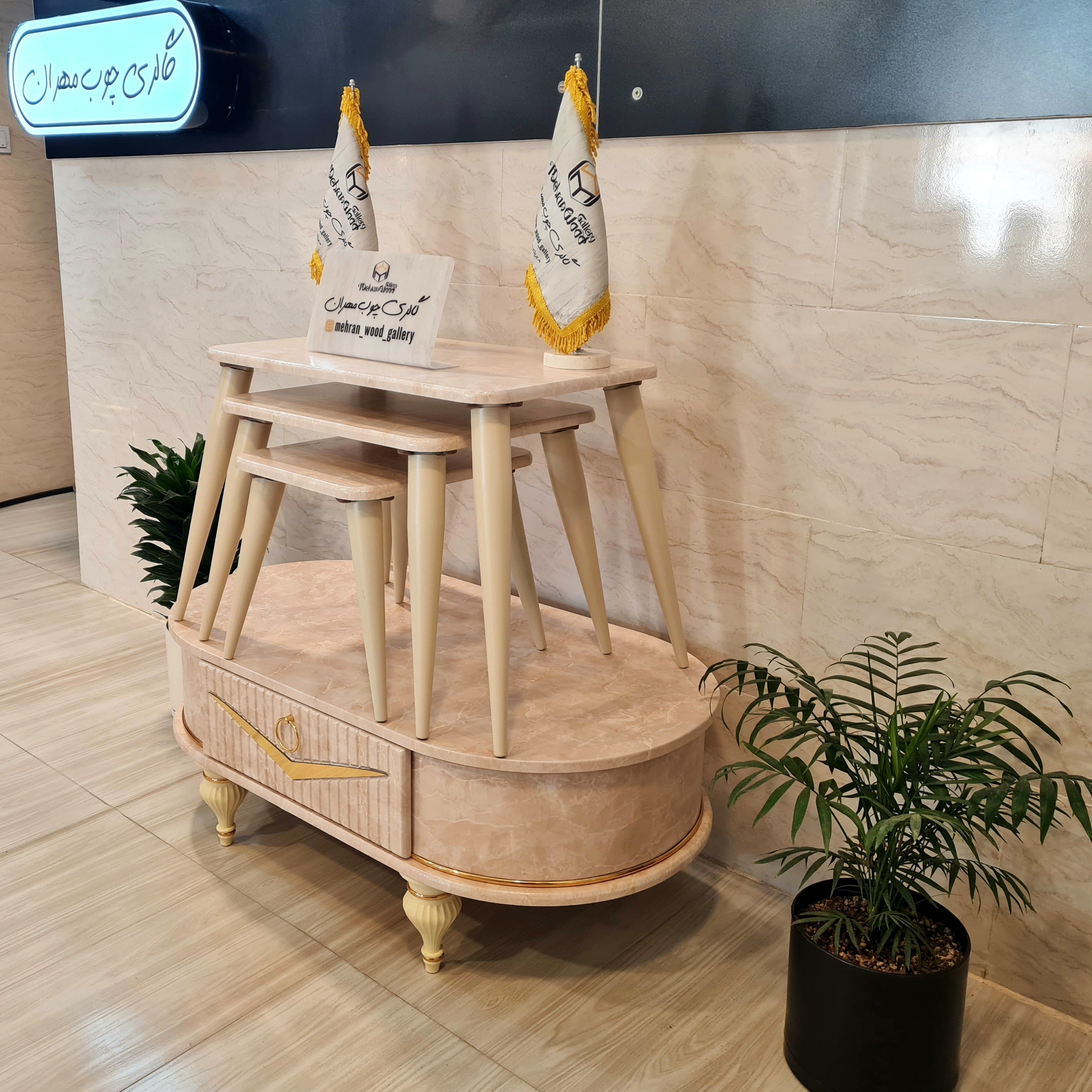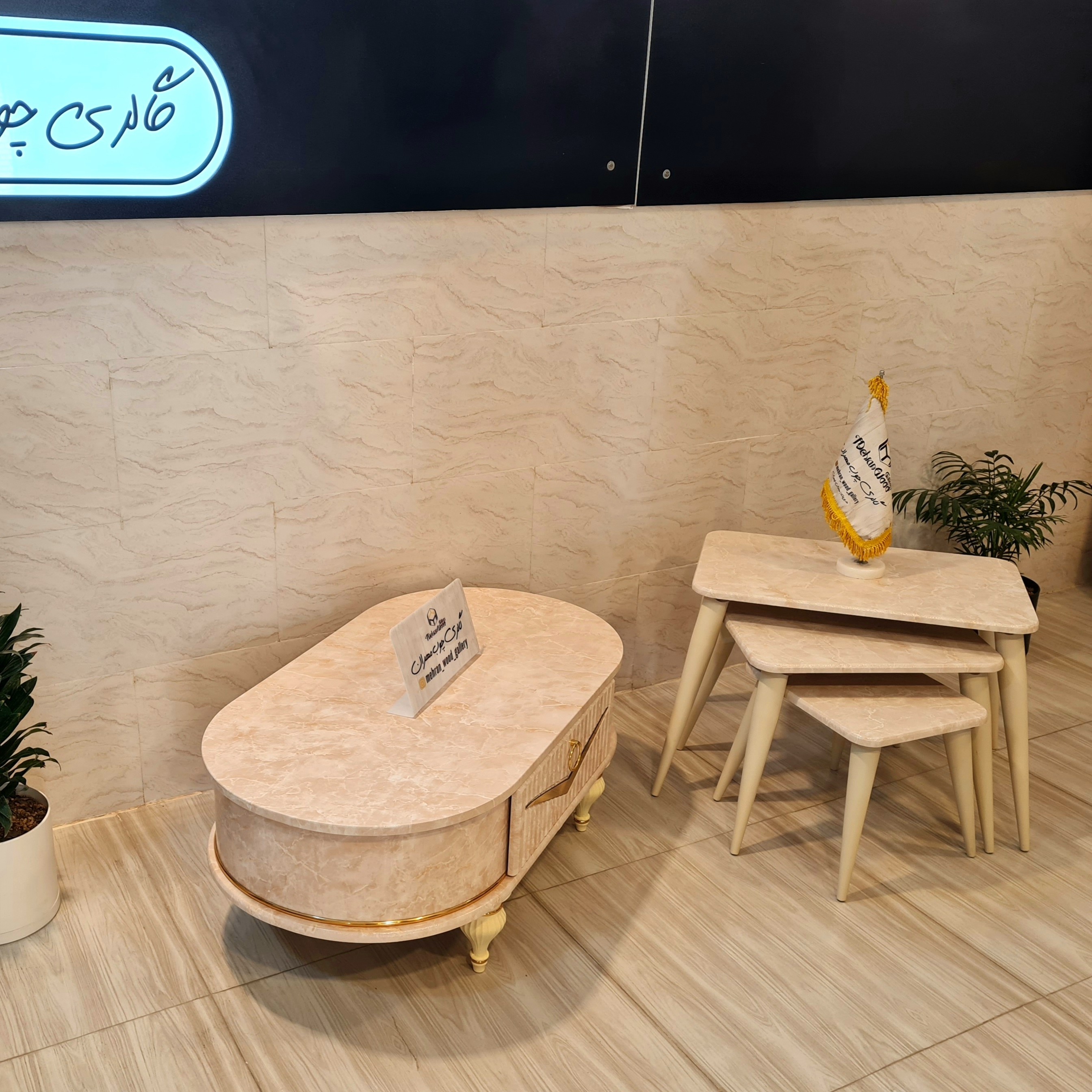 میز جلو مبلی 4تکه میزجلومبلی کرم سنگی میز جلومبلی عسلی تمام وکیوم FRP هزینه ارسال با مشتری طرح کرکره ای مبلمونسرا مدل 222555