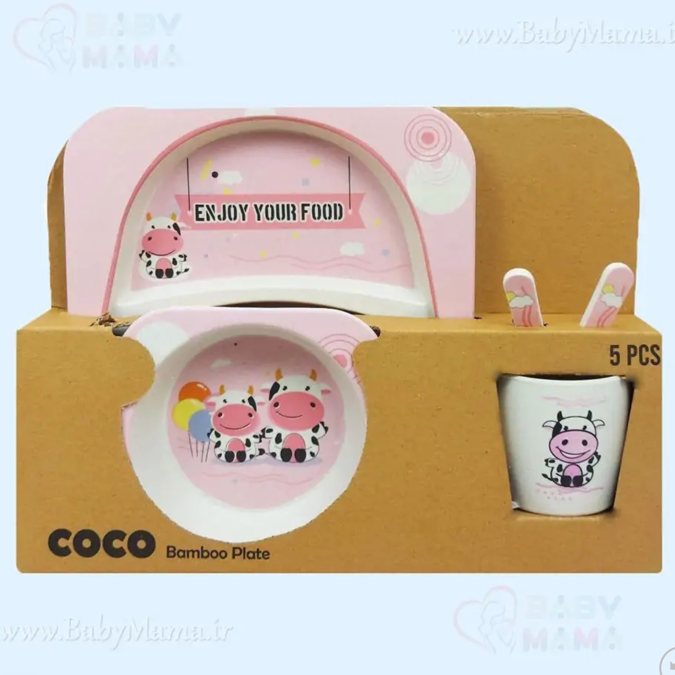 سرویس ظرف غذای کودک5تکه طرح مربع.ساخته شده از فیبر بامبو.فاقد مواد شیمیایی و BPA.سبک بدون جذب رطوبت.آنتی باکتریال ومقاوم مبلمونسرا مدل 289939