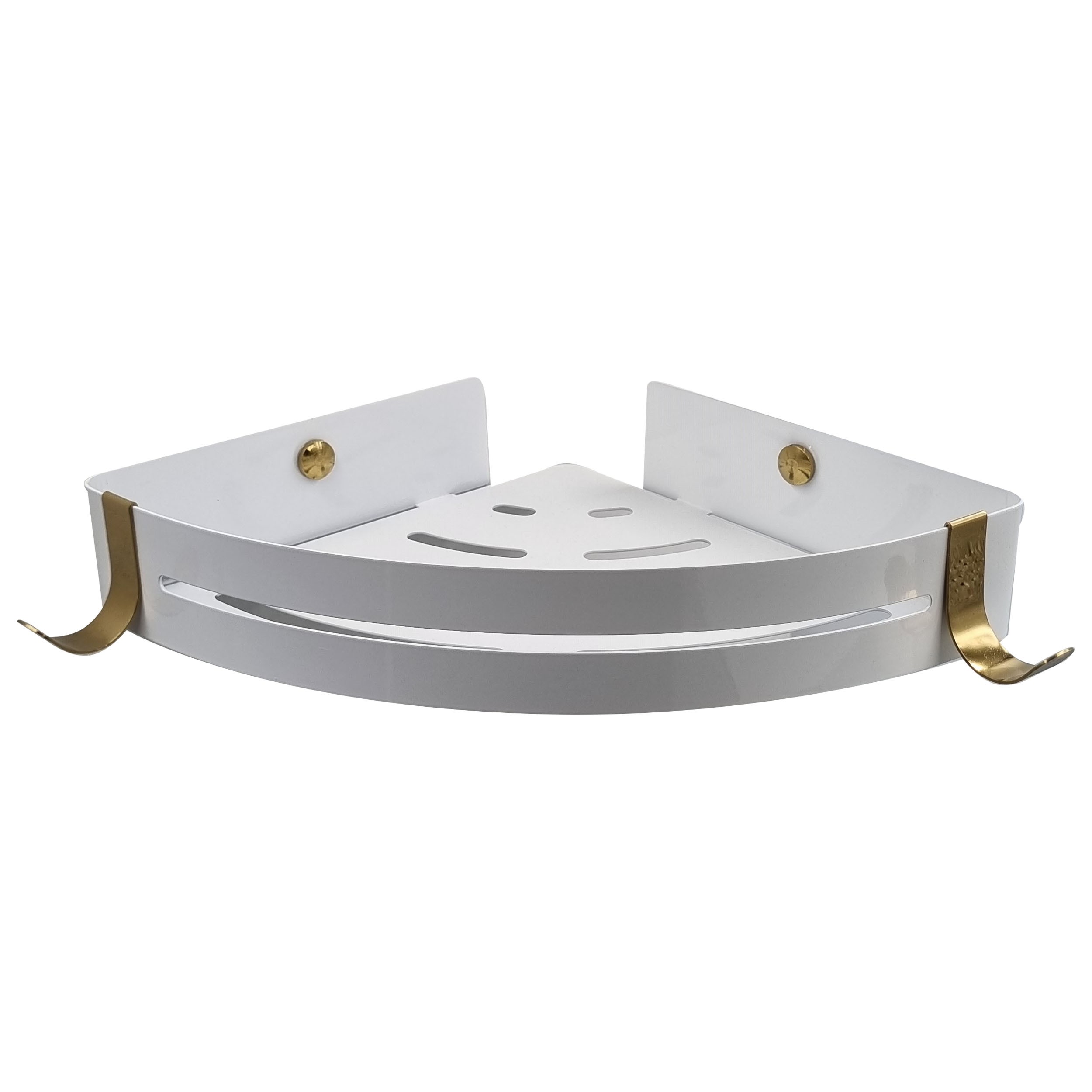استند جاشامپویی حمام تک طبقه جنس استیل 304 ضد زنگ نگیر مدل کنج سفید طلایی مبلمونسرا مدل 260409