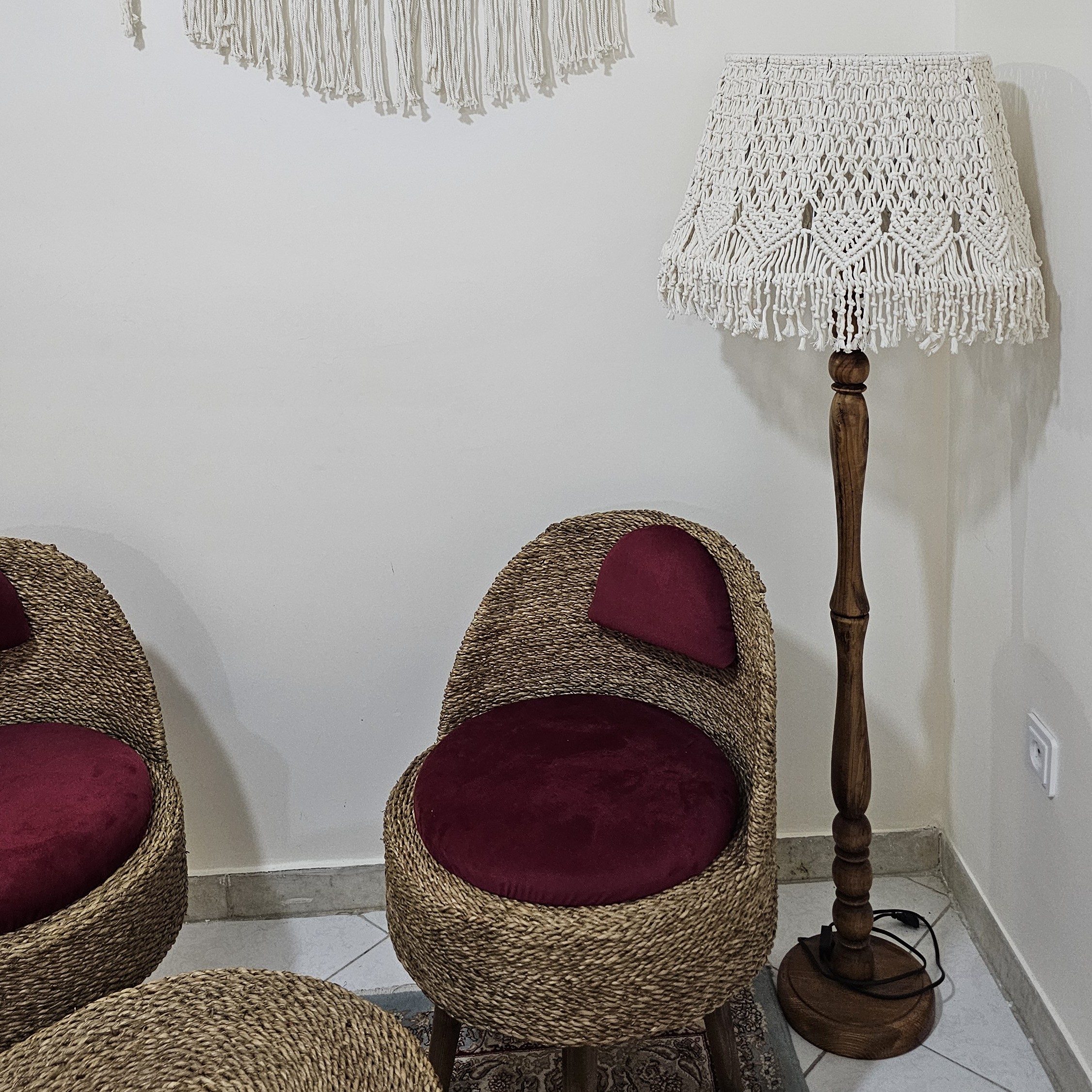 آباژور مکرومه بافی سایز بزرگ کنار سالنی پایه چوبی مبلمونسرا مدل 233061