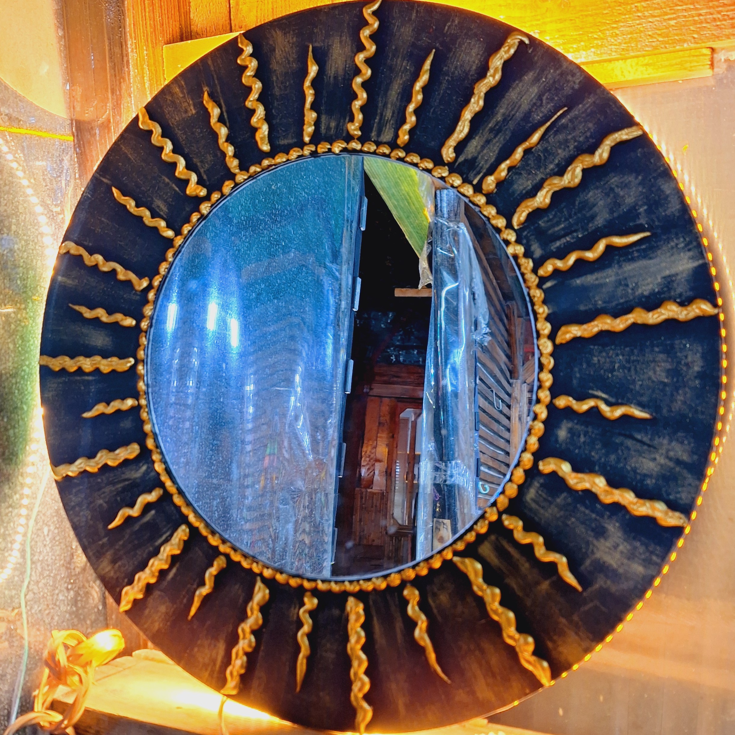 آینه طرح خورشید . دورش کار ریسه داره و روشن میشه ادابتور جنس عالی داره زمینه چوب ۴۵ سانت و آینه حدود ۲۵ سانت ارسال امن به هرکجا که هستین