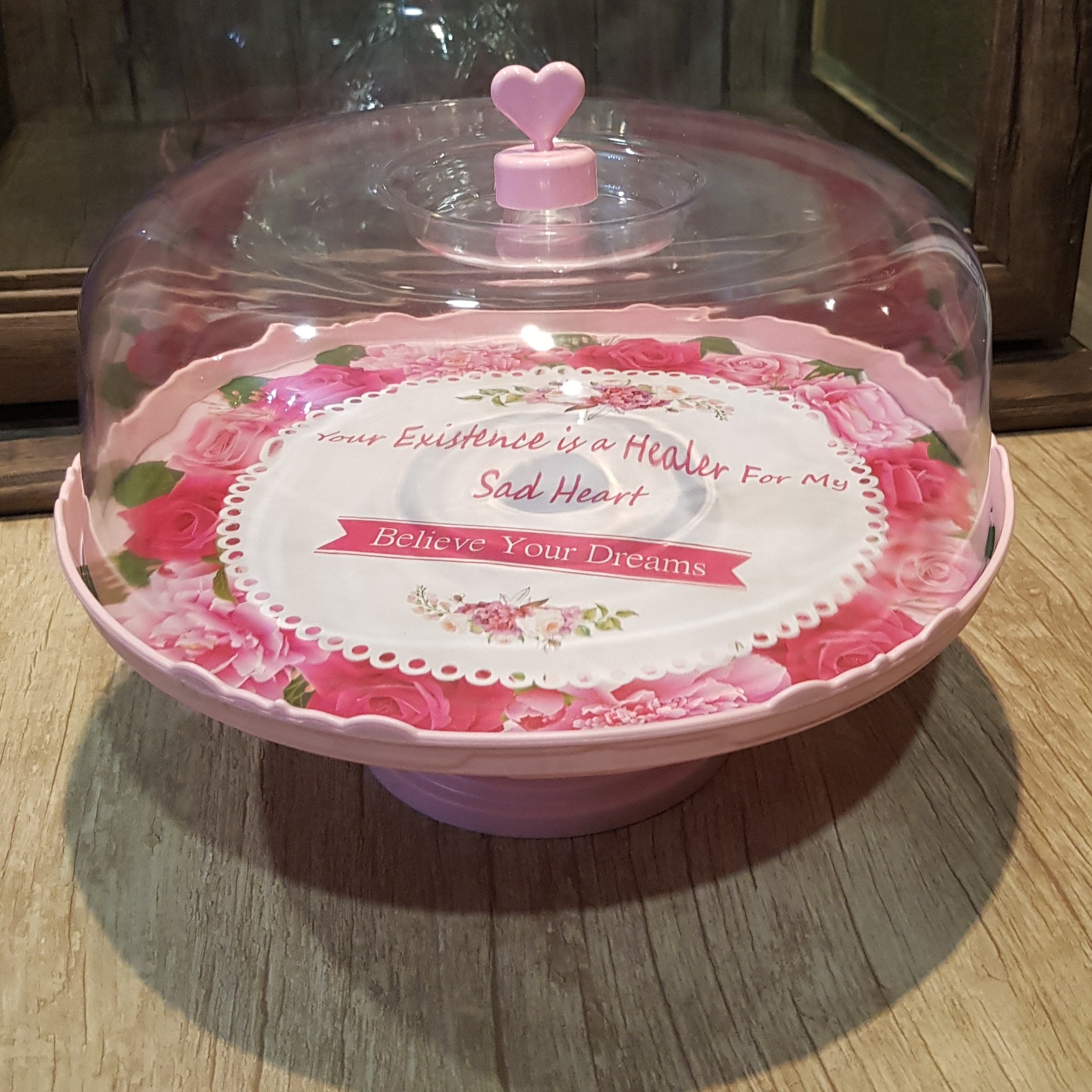 ظرف کیک پایه دار،قطر کف 27 ارتفاع درب 10 سانت،جنس کف طلق،جنس درب لاکی،رنگ صورتی مبلمونسرا مدل 276916