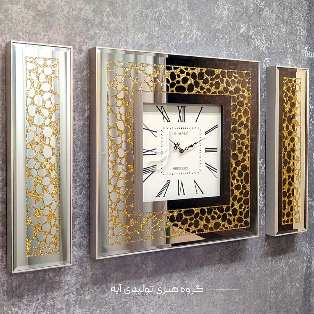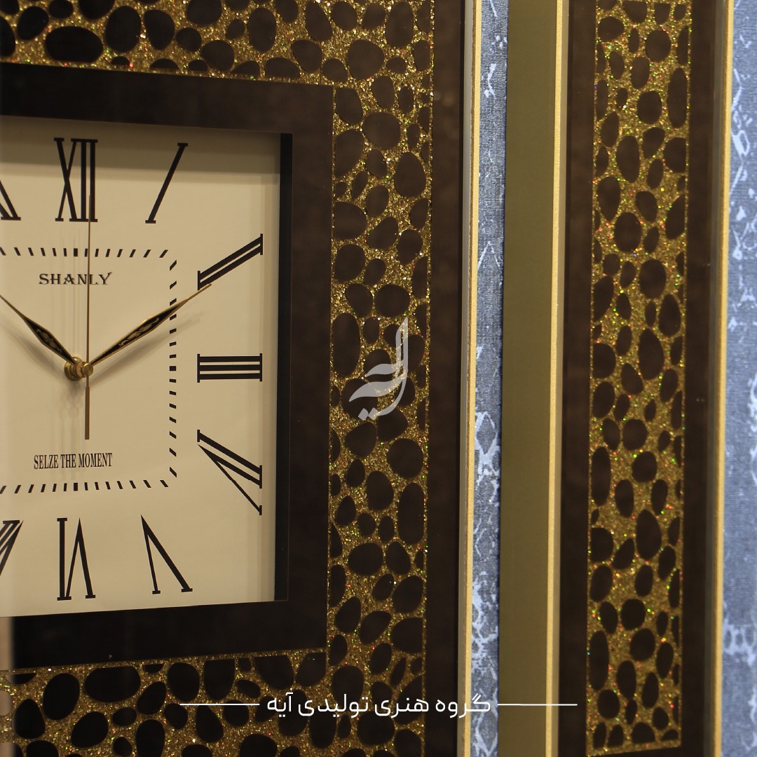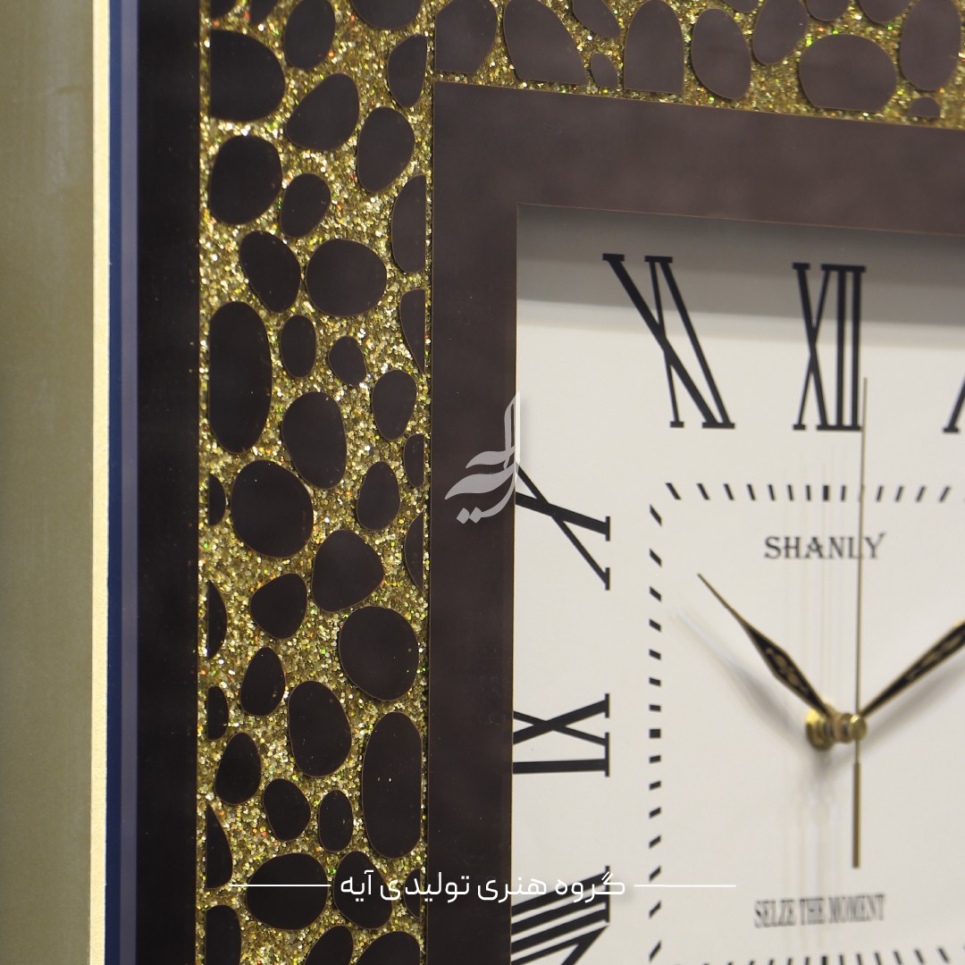 ساعت دیواری آینه ای طرح سنگی برنزطلایی مبلمونسرا مدل 239296