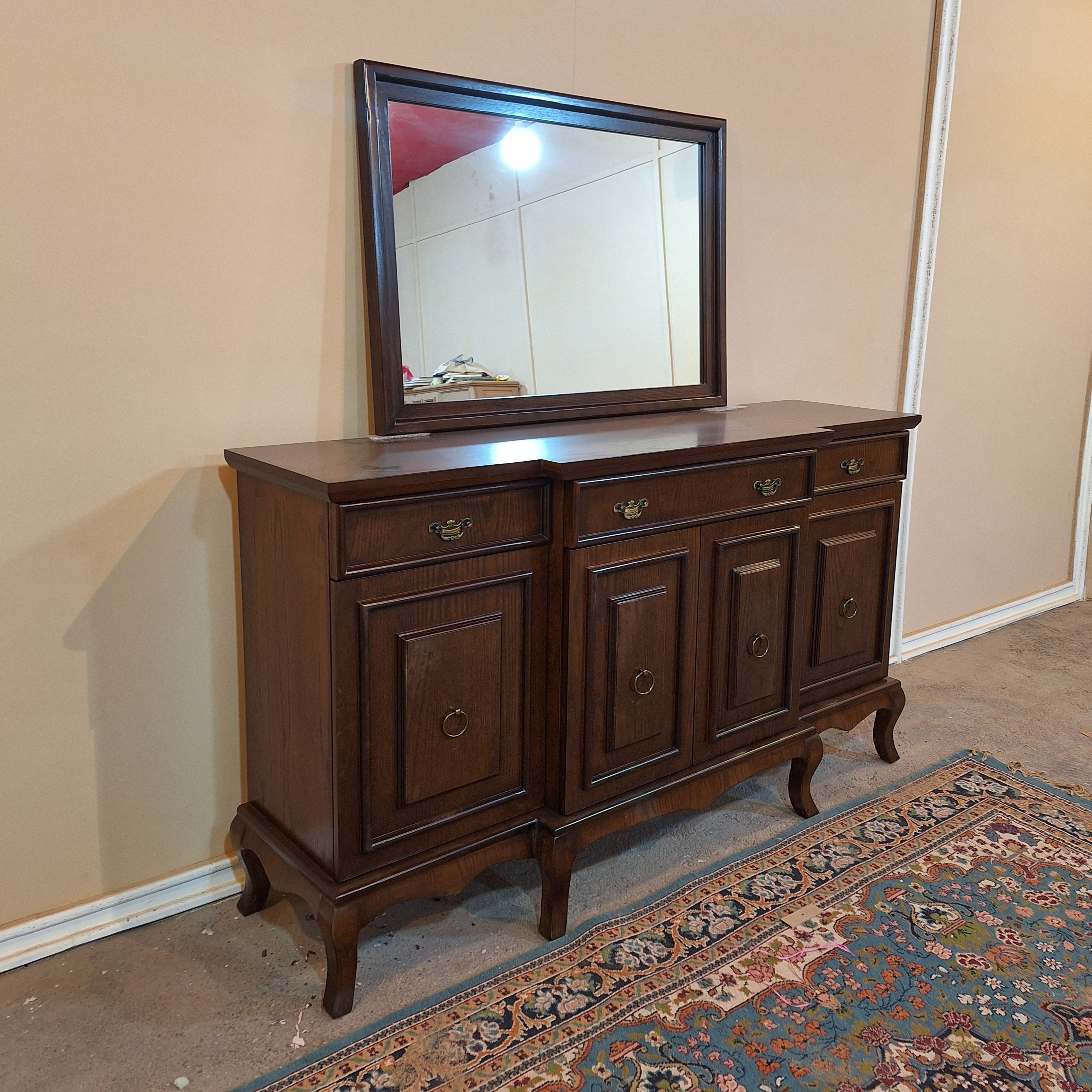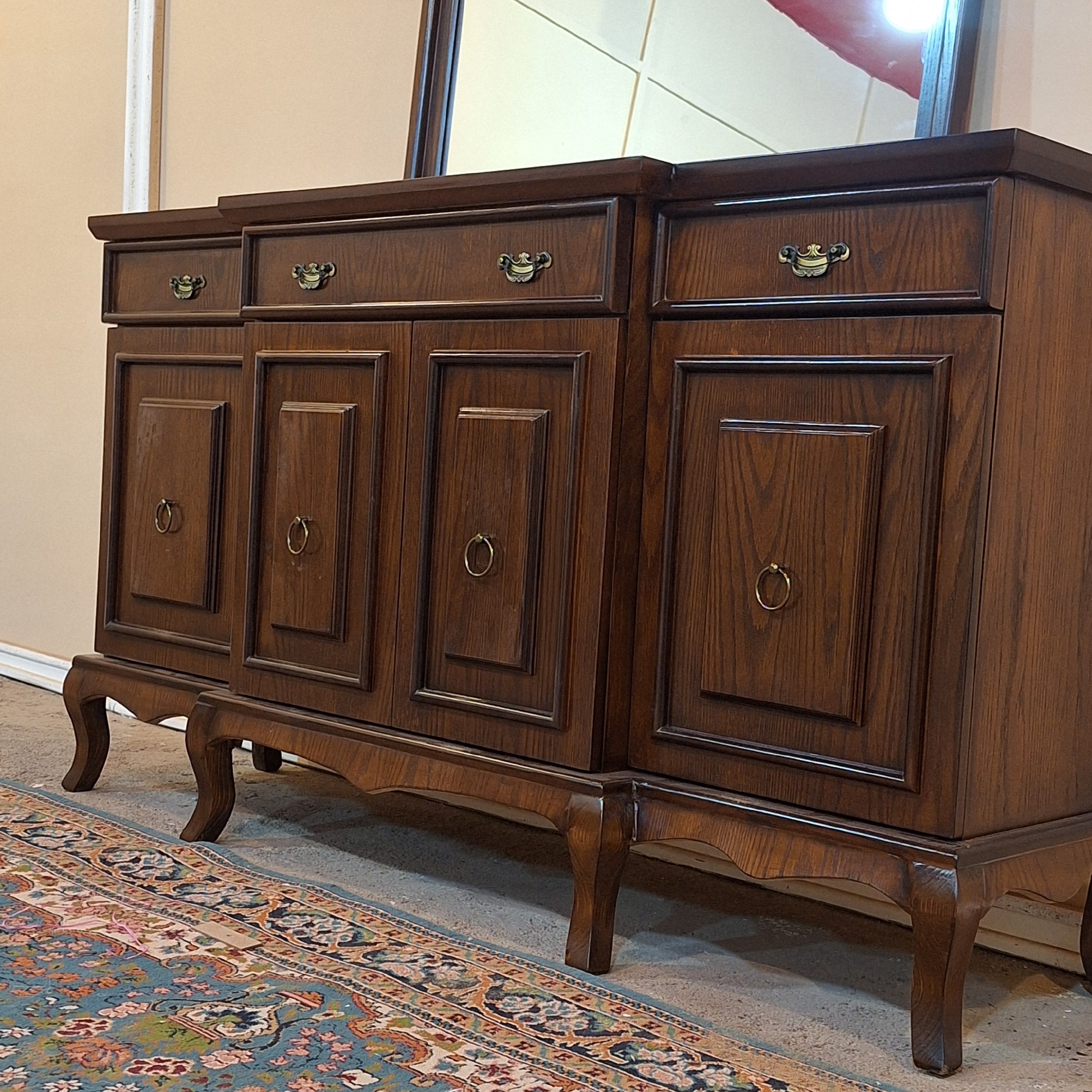 کنسول چوبی کلاسیک جادار قهوهای و آینه🥰 یه کنسول 4 درب به شدت جادار که به همراه 3 کشو که کلی ظرفیت داره و فضای عالی برای چیدمان ظرف و ظروف داری😉 کنسول و آینه با ظرافتی که داره زیبایی خونه رو چندبرابر میکنه🙂 ابعاد : 160.90.45 متریال 🪵 پایه ها چوب روس و بدنه ام دی اف روکش چوب بلوط ارسال به سراسر کشور داریم 🚛 هزینه ارسال به عهده مشتری و به صورت میباشد.