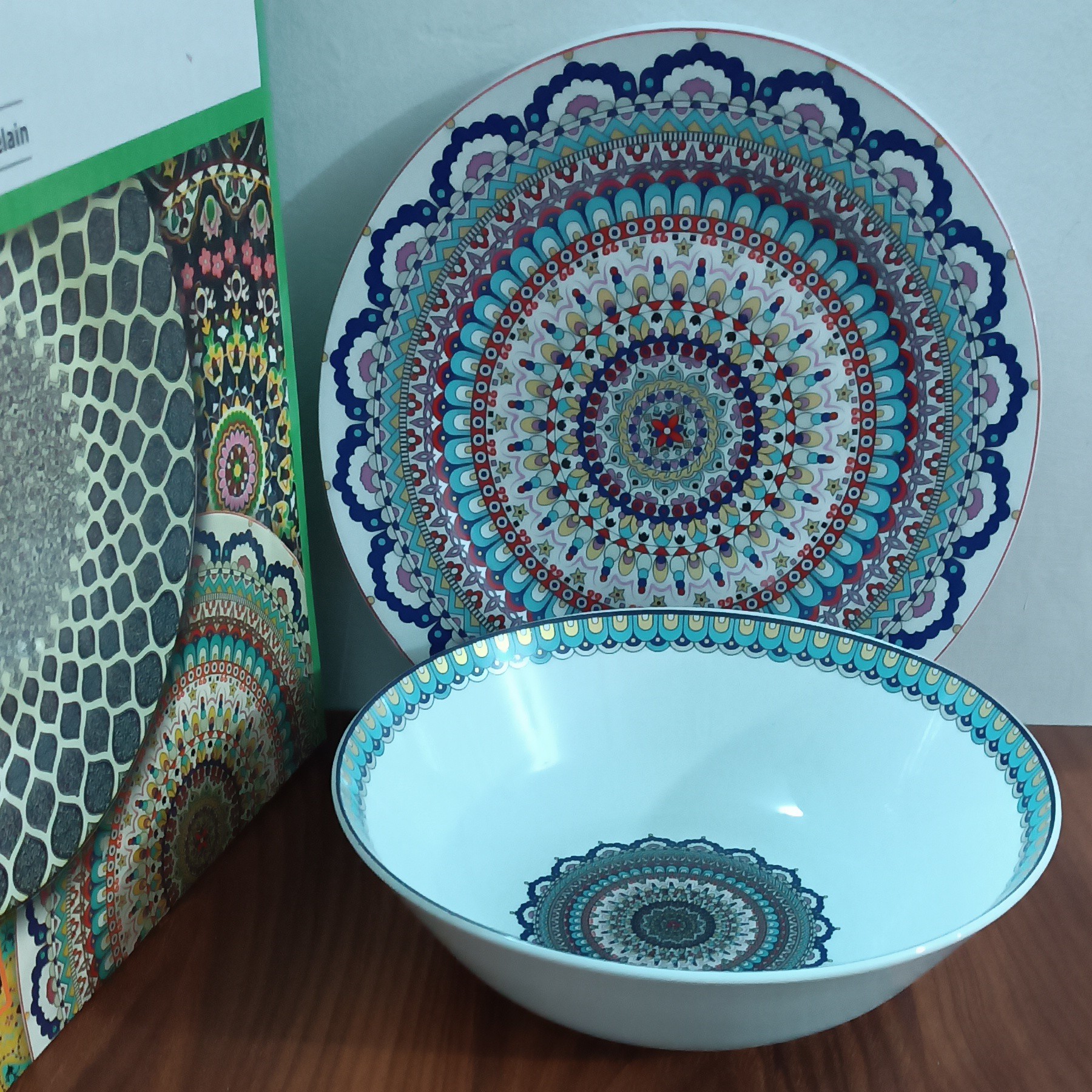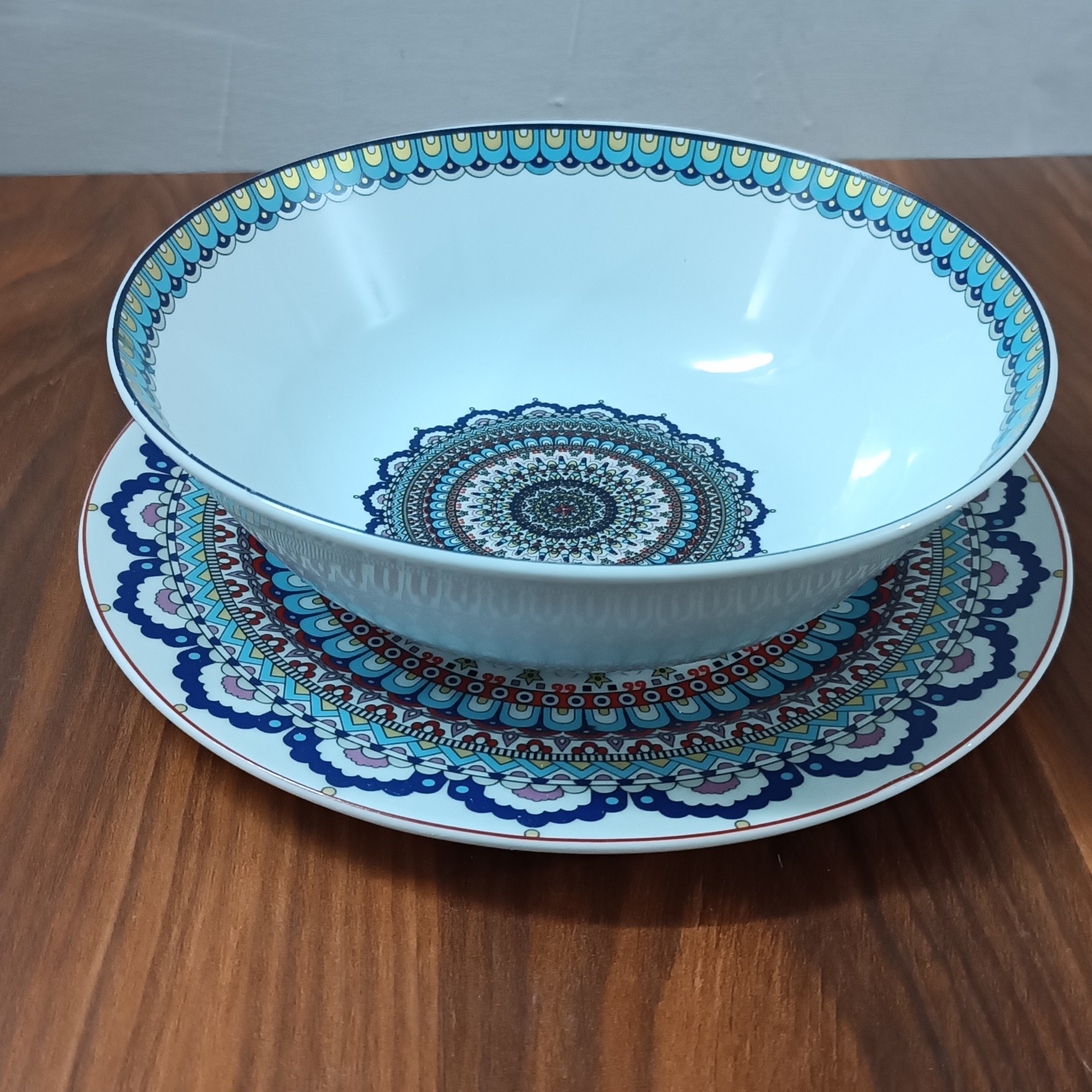 ست دو پارچه چینی مقصود مدل آذین یک عدد کاسه یک عدد شیرینی خوری کار زیبا مناسب جهت دکور یا استفاده