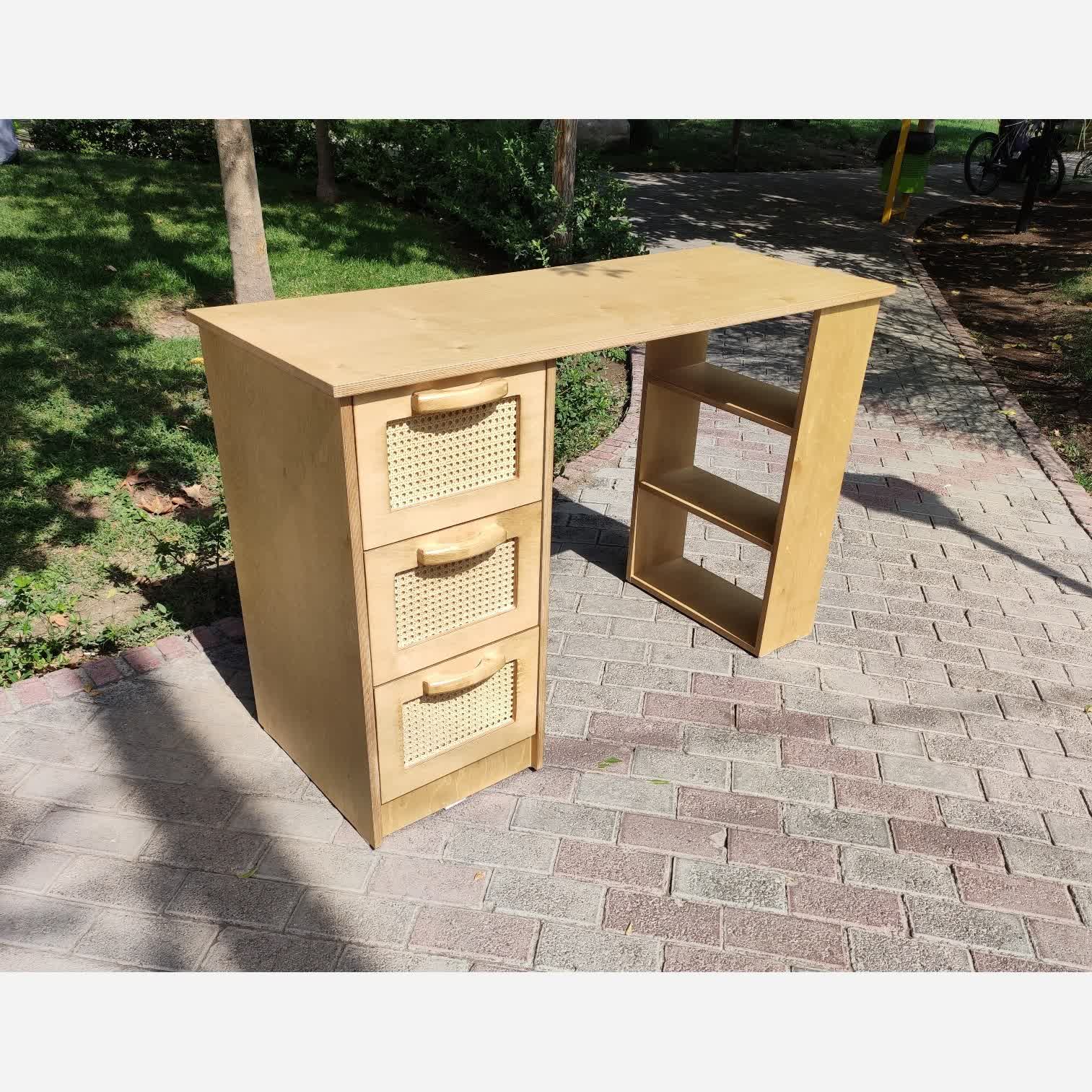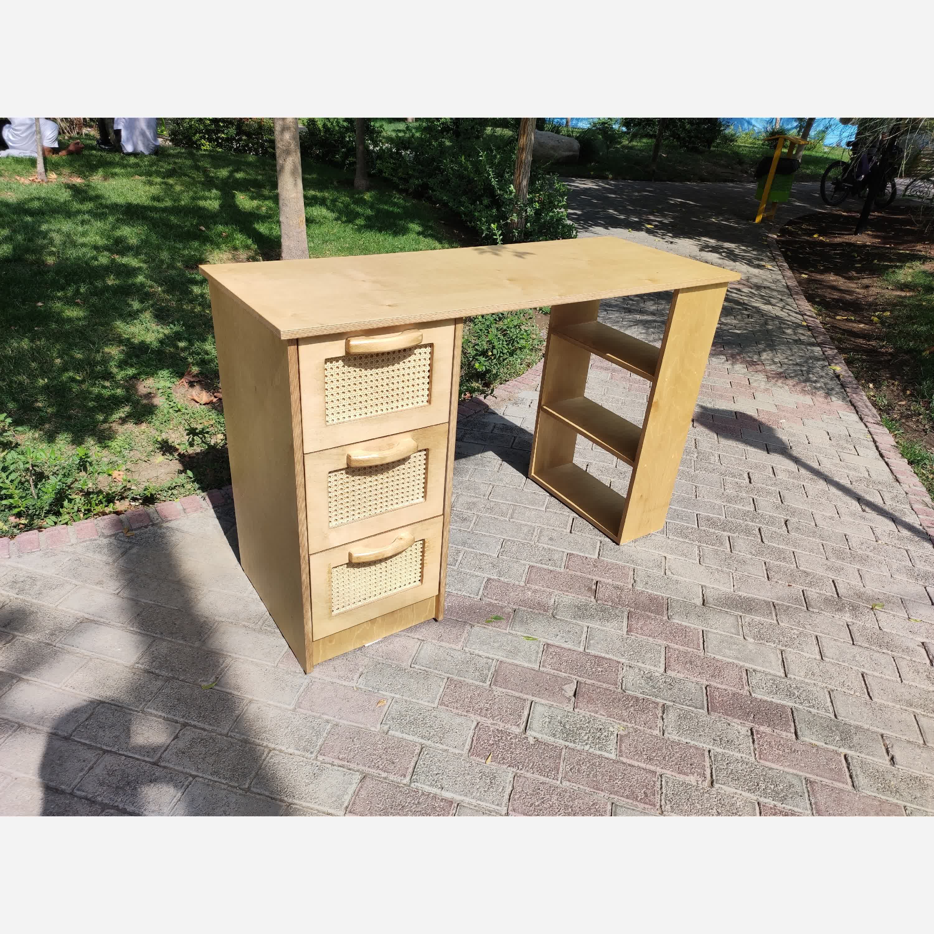 ی کار بادوام میخوای که سالها برات بمونه و ازش خسته بشی؟ میز تحریر چوبی جنس پلی وود خارجی طول 130 عرض 50 ارتفاع 85 ترکیبی از چوب و حصیر سه کشو با ریل های خارجی برند ملونی با 5 سال ضمانت کفی کشو ها 15 میل نشکن محصول فوق ضد آب بوده و در برابر رطوبت کاملا مقاوم میباشد ارسال رایگان و بسته بندی ایمن