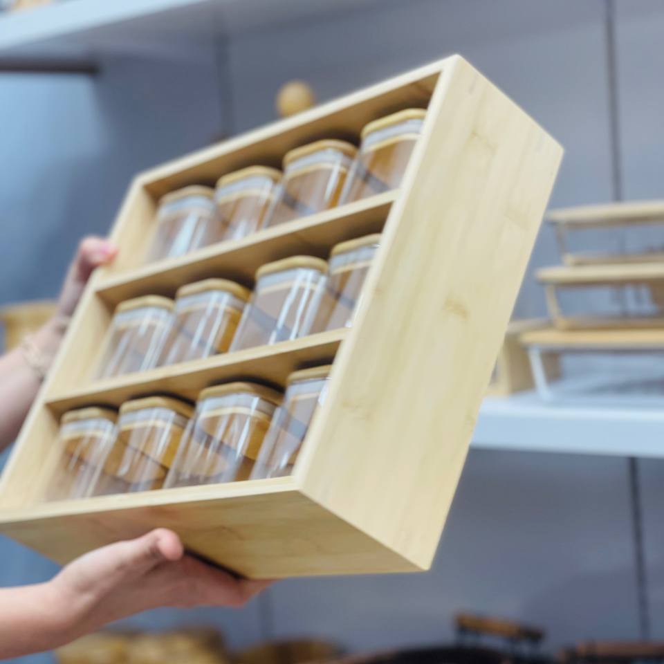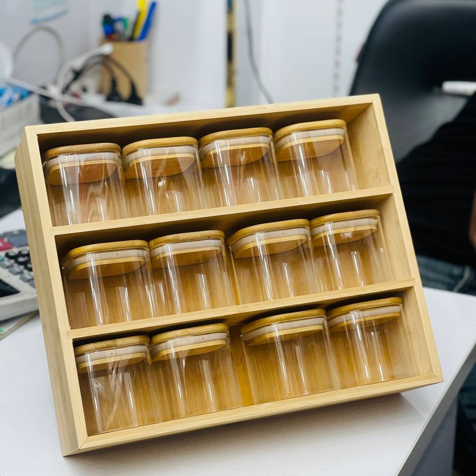 پاسماوری ۱۶ بانکه بانکه ها پیرکس درجه یک و درب بامبو واشر دار استند بامبو ،پایه دار وارداتی درجه یک ارشال با بسته بندی تضمینی