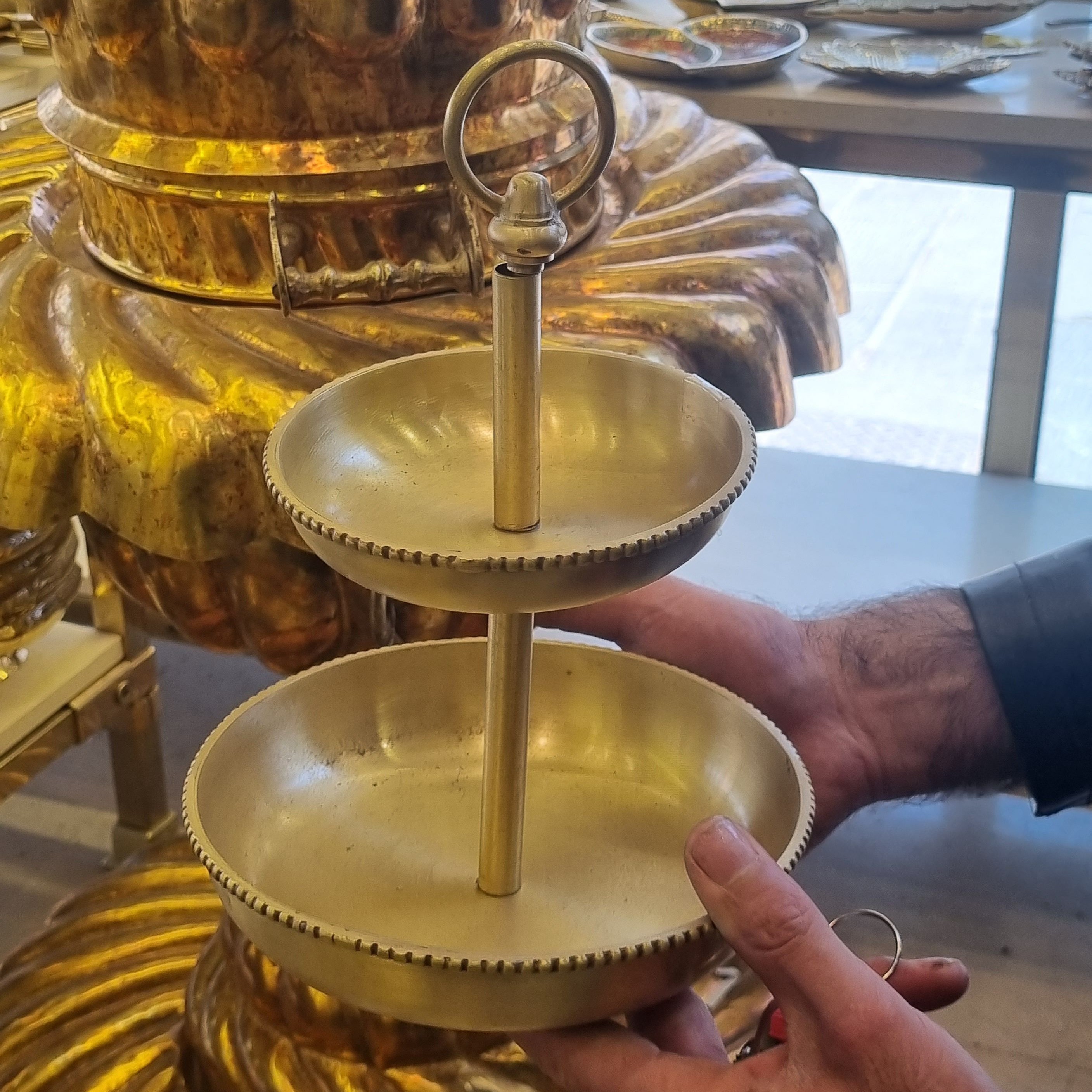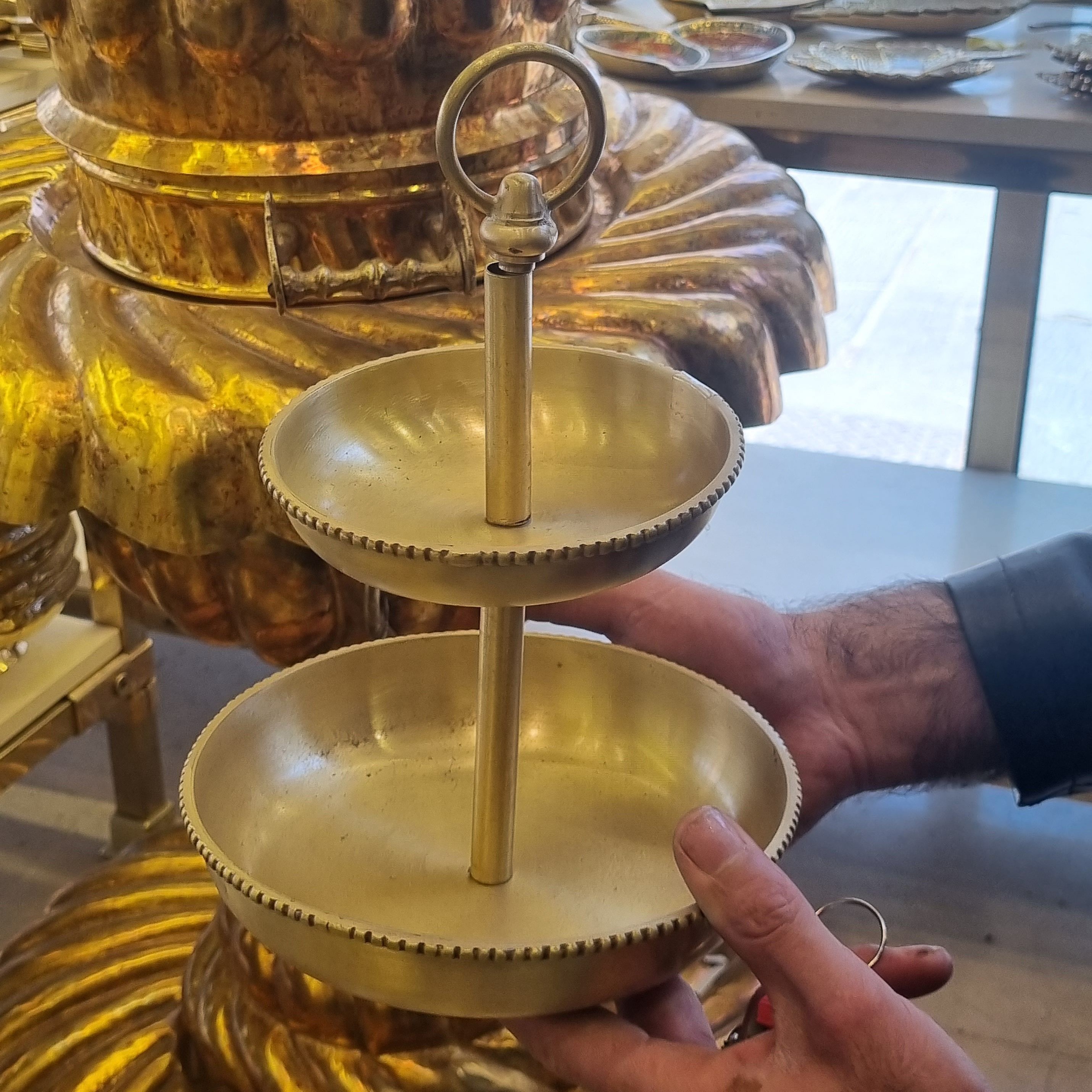 آجیل خوری و شکلات خوری برنجی هندی مدل دو طبقه با طرح مپکو آنتیک و ارتفاع 30 سانت با کیفیت بی نظیر و سنگین مناسب استفاده دائم و قابل شستشو بدون تغییر رنگ