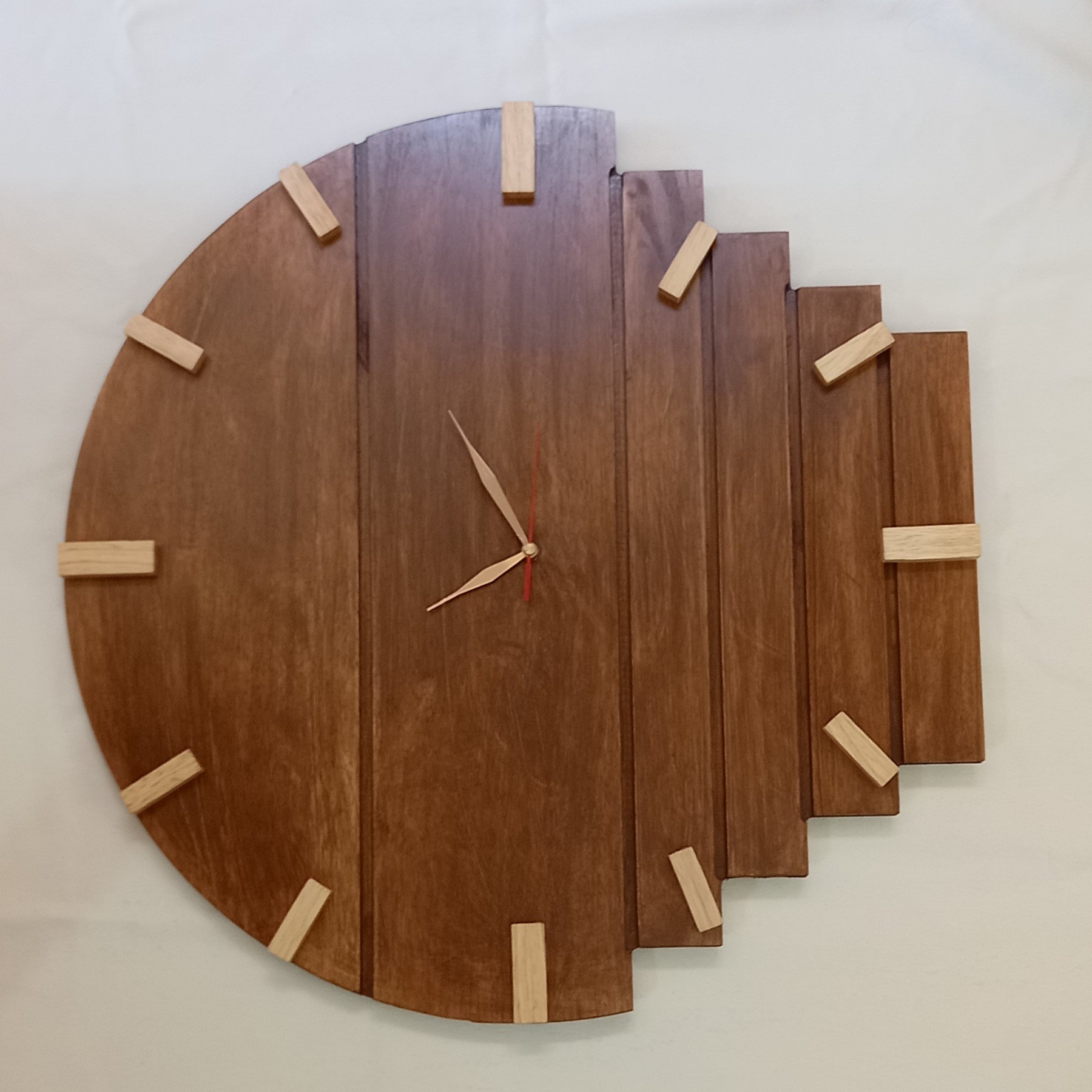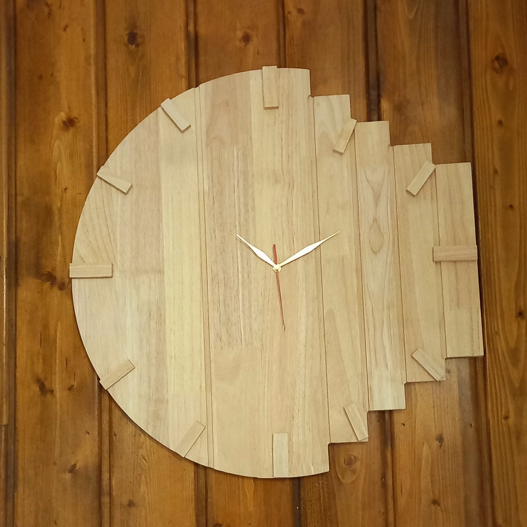 ساعت دیواری چوبی با چوب رابر بدون موتور و عقربه ها