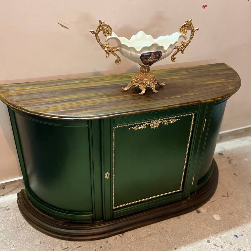 میز کنسول بازسازی شده کلاسیک چوبی دارای محافظ پلی اورتان ✓ استفاده شده از رنگهای هنری کادنس✓ طول عمر رنگ بالا✓ تضمین 2 ساله✓ هنر دست ؛ ارزشی ماندگار و انتقال حس خوب 🌿 ساکنین تهران برای خرید میتونید در قسمت گفتگو با بنده هماهنگ کنید و بصورت حضوری به کارگاه تشریف بیارید و کنسول مورد نظر رو تهیه کنید✓ تمامی کنسول ها با هر رنگی قابل سفارش هستند✓ مبدا ارسال : تهران ارسال به سراسر ایران امکان پذیره. هزینه ارسال به شهرستان حدوداً 800 هزار الی 3 میلیون تومان بستگی به فاصله نسبت به تهران دارد و پرداخت بصورت و درب منزل میباشد. توجه : هزینه ارسال ممکن است با مبلغ ذکر شده مقداری تفاوت داشته باشد ، چنانچه میخواهید از هزینه ی دقیق مطلع شوید حتما از قسمت گفتگو برای هزینه باربری تا مقصد مورد نظر استعلام قیمت کنید. سفارش قاب آیینه+آیینه امکان پذیر است✓ از طریق قسمت گفتگو اقدام نمایید تا راهنمایی شوید. قابلیت تغییر رنگ وجود دارد✓