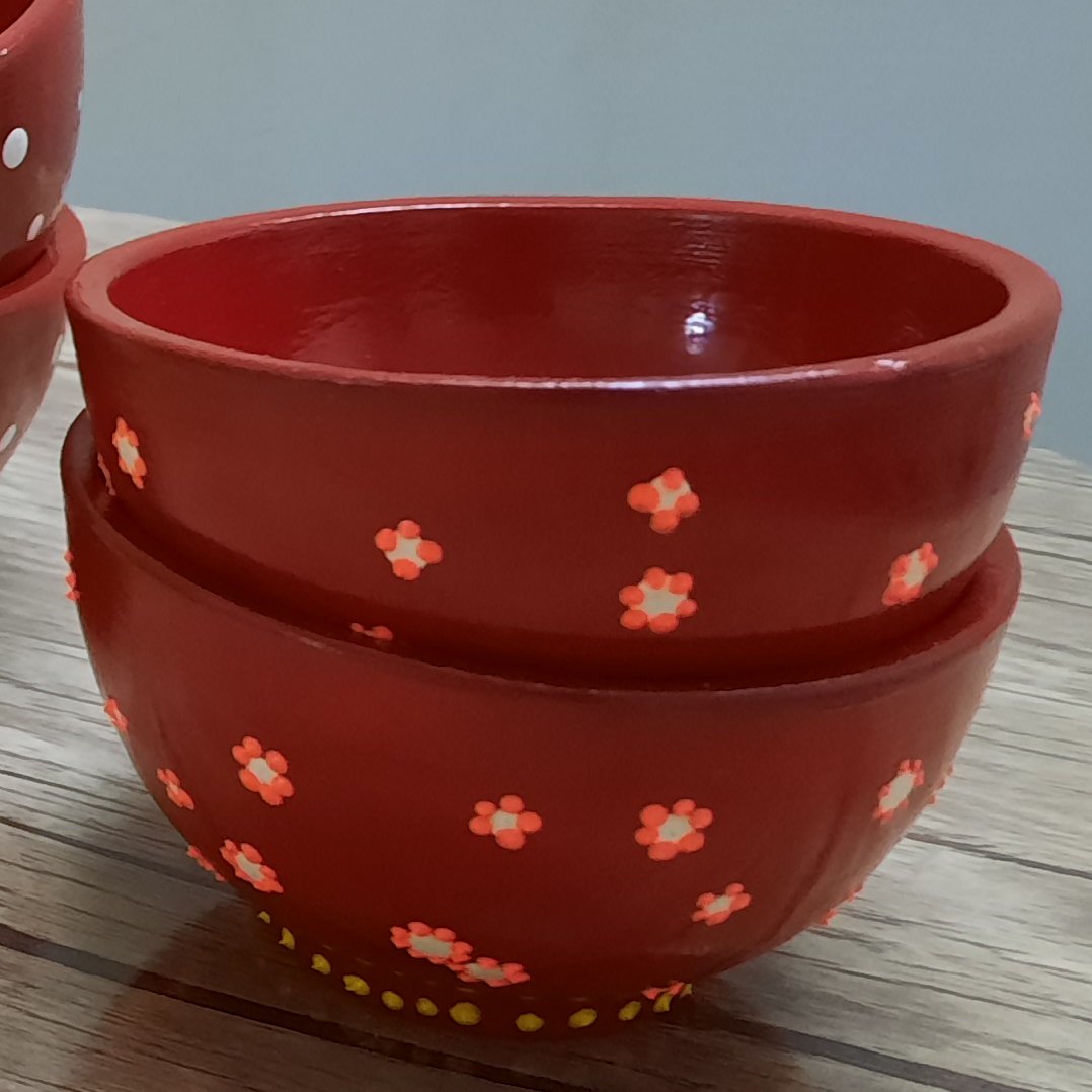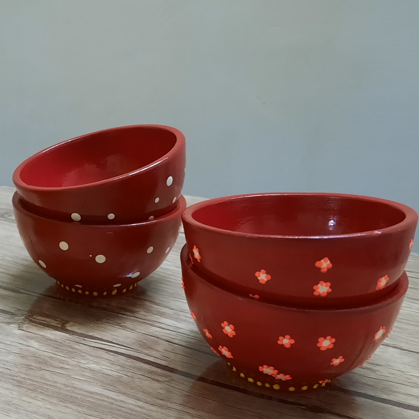پیاله های سفالی قرمز خال خالی ، بسیار شیک و فانتزی و دارای رنگ ثابت و قابل شستشو