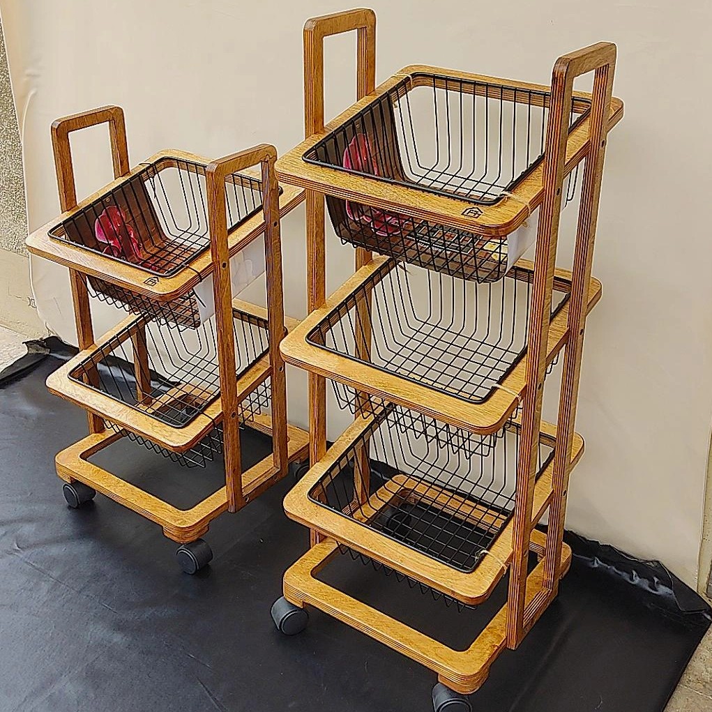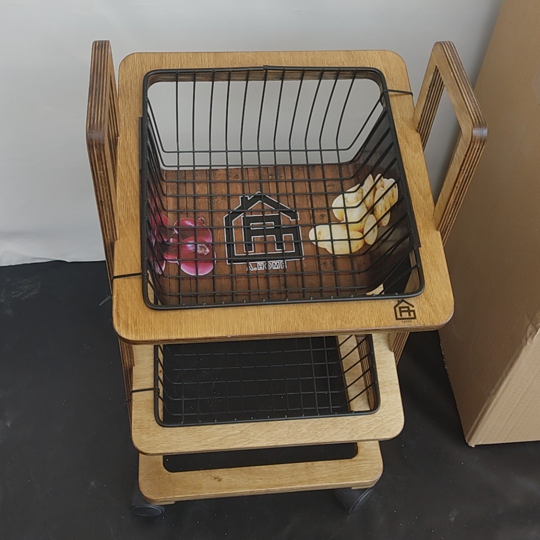 سبد سیب زمینی پیاز چوبی چرخ دار ترولی رنگ شده ضد آب مبلمونسرا مدل 289656
