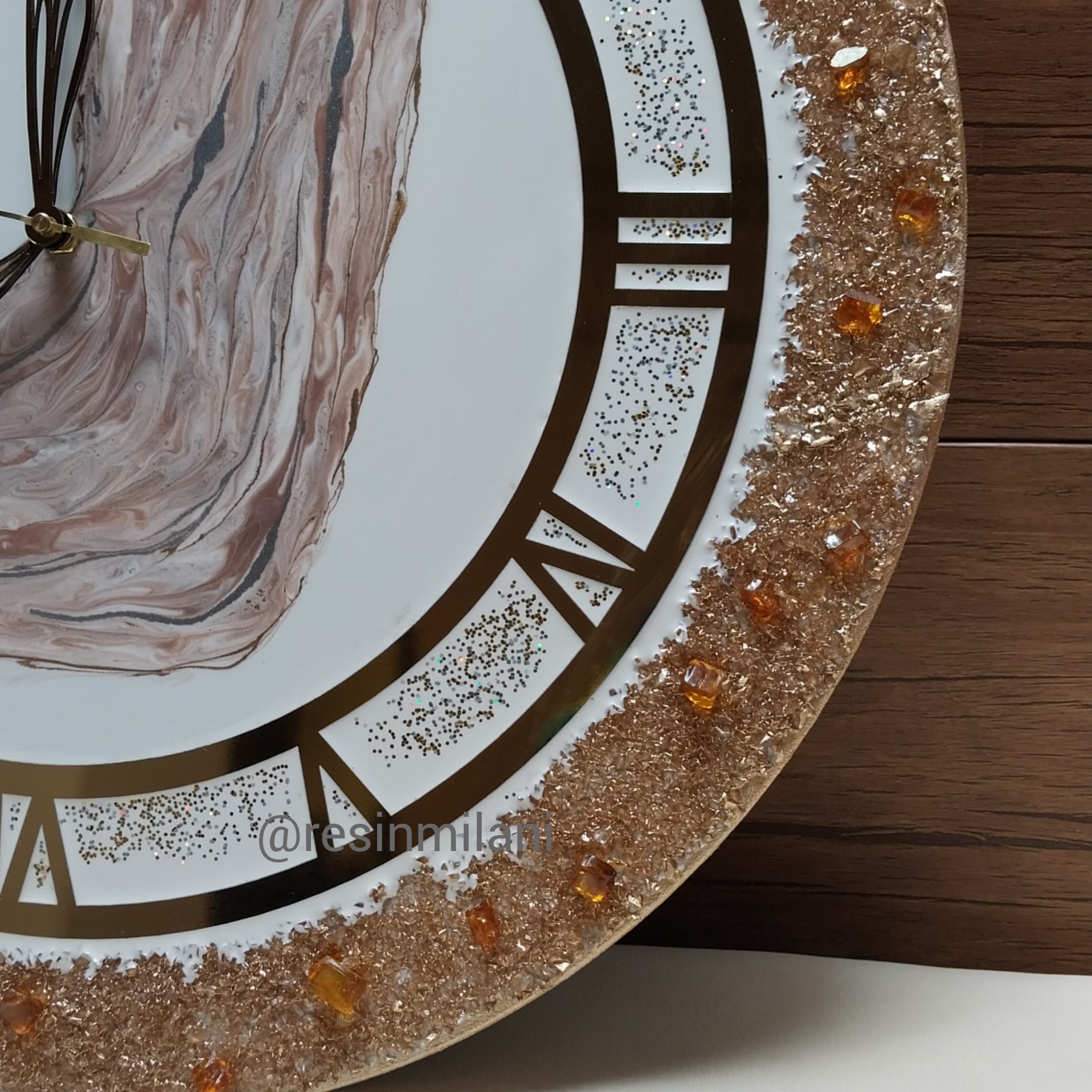 ساعت دیواری رزین طلایی دور کریستال مبلمونسرا مدل 237323
