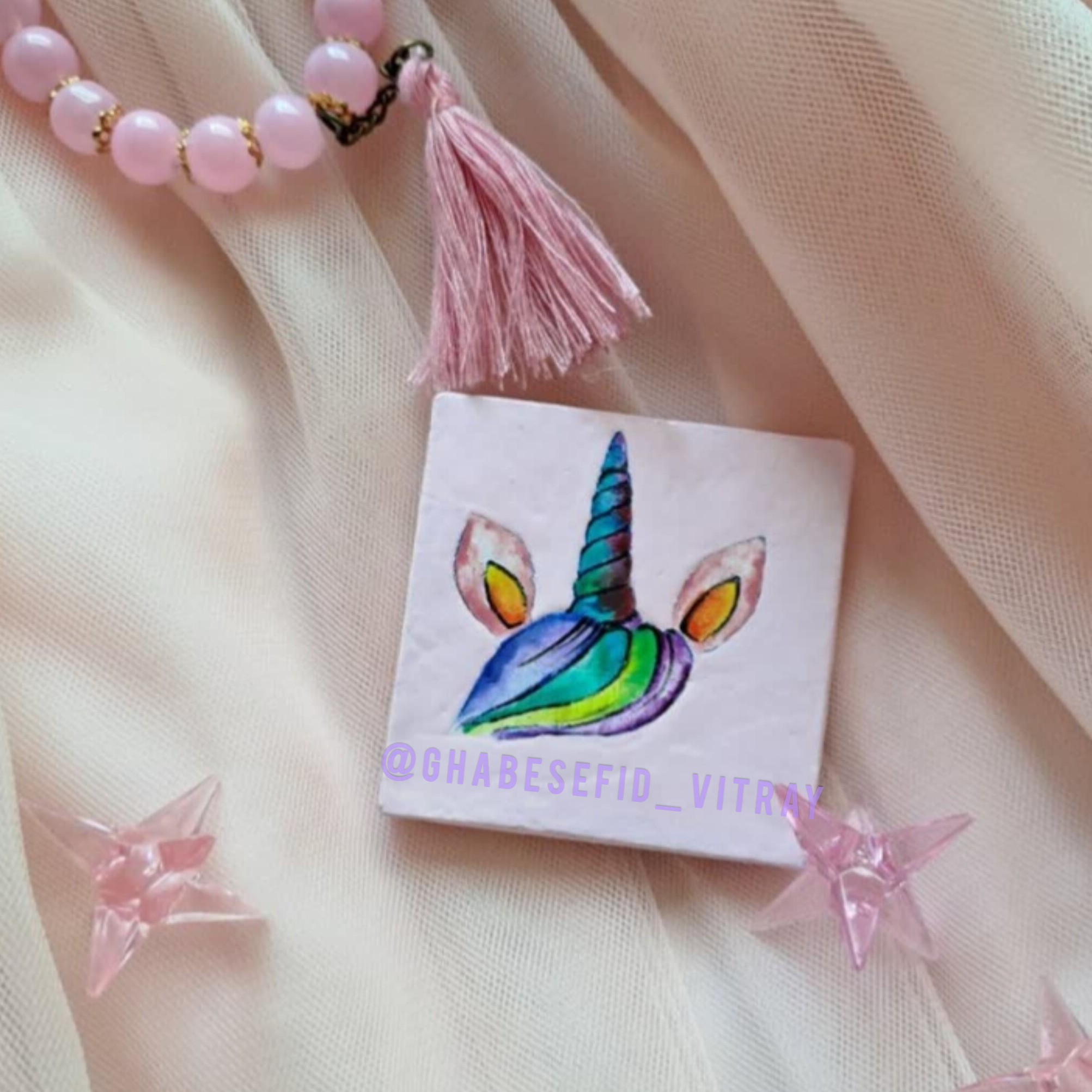 ست دوتایی مگنت یخچالی سفالی نقاشی ویترای طرح اسب تک شاخ تمیز و ظریف قابل شستشو چاپ نیست قابل سفارش با رنگ زمینه دلخواه