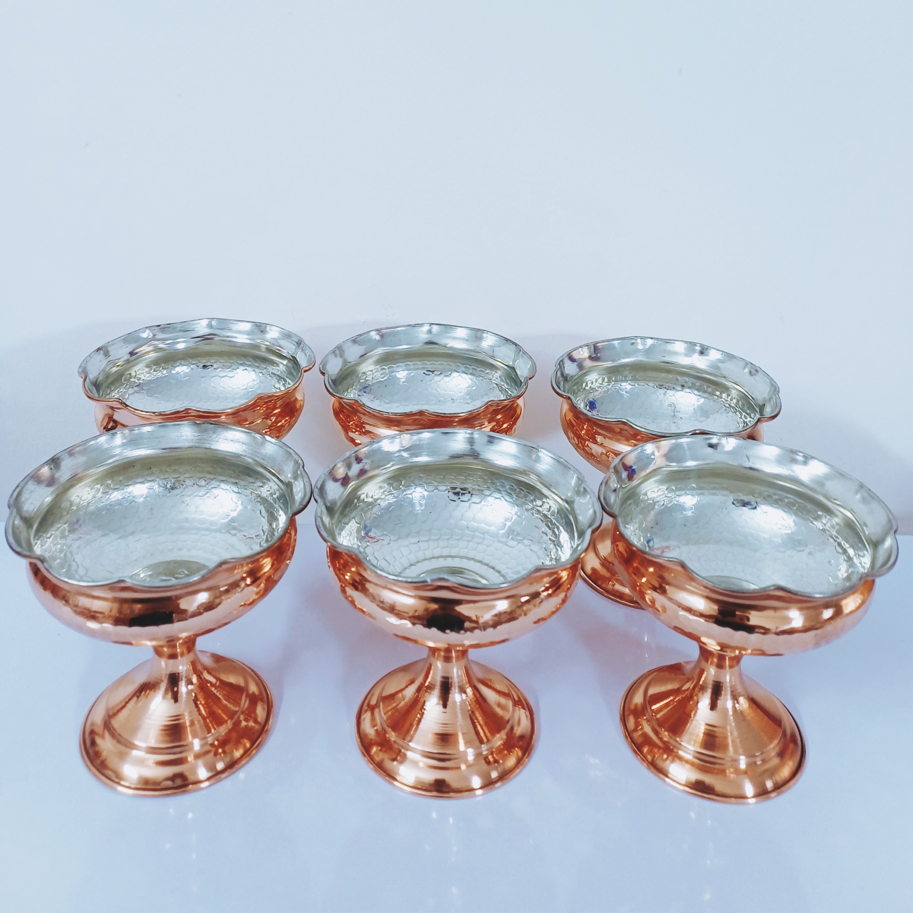 پیاله پایه دار مسی بستنی و آجیل خوری مدل عالیس نانو شده 6 عددی چکشی و با کیفیت عالی مبلمونسرا مدل 265284
