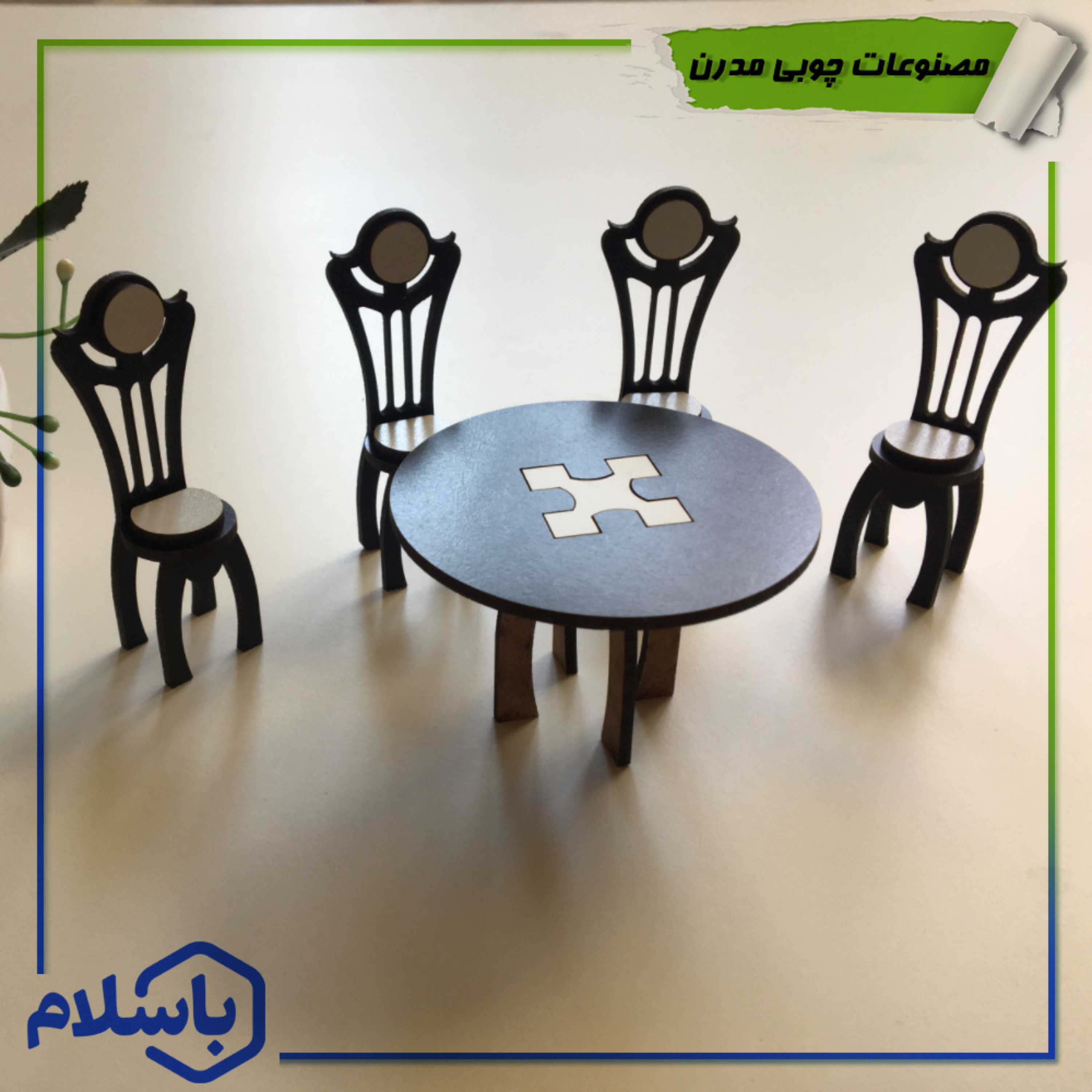 میز و صندلی 4 نفره چوبی برجسته مبلمونسرا مدل 216100