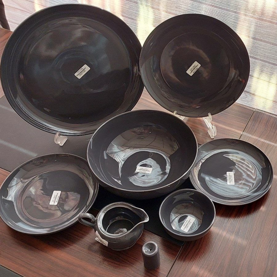 6عددپیش دستی.6عددپیاله.6عددپلوخوری.6عددخورشت خوری.دیس.کاسه سالاد.3عددنمکدون.سس خوری.و6عددفنجان ونعلبکی